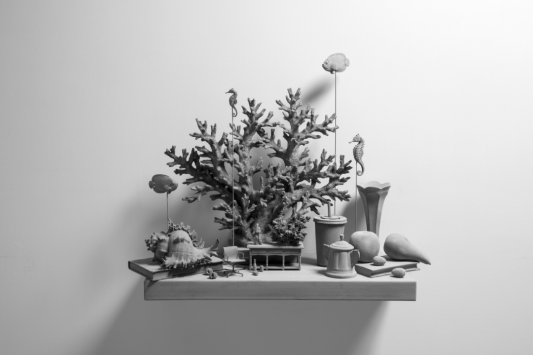 ▲ 汉斯·欧普·德·贝克 (Has Op de Beeck)《静物(墙上作品)(6)》Still Life (wall piece) (6), 2019, 石膏、聚脂、MDF、金属、涂层, 64 x 85 x 33厘米, 版数:独版, ©️艺术家与常青画廊