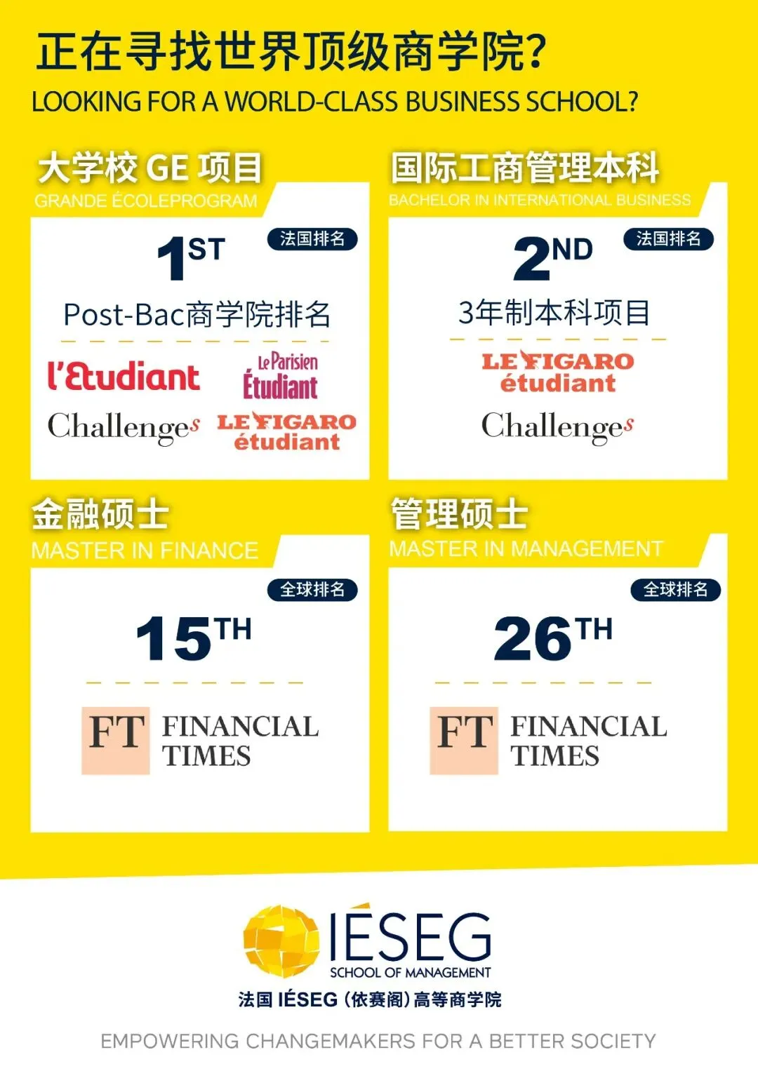 法国高校春季教育展即将盛大启幕,覆盖北京、上海、沈阳、武汉、成都、广州六大城市。4月11日起连续三个周末,IESEG与您相约。