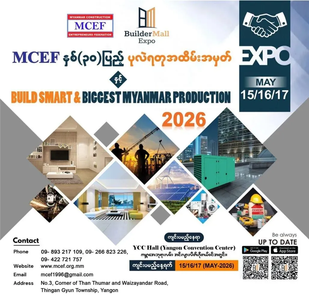 展会内容涵盖仰光房地产行业、可再生能源服务、建筑公司及建筑材料、电气与电子产品、室内装饰与现代家具、大型机械设备等。届时不仅有缅甸建筑企业家协会(MCEF)会员企业参展,还将有缅甸国内大型企业参与展示。