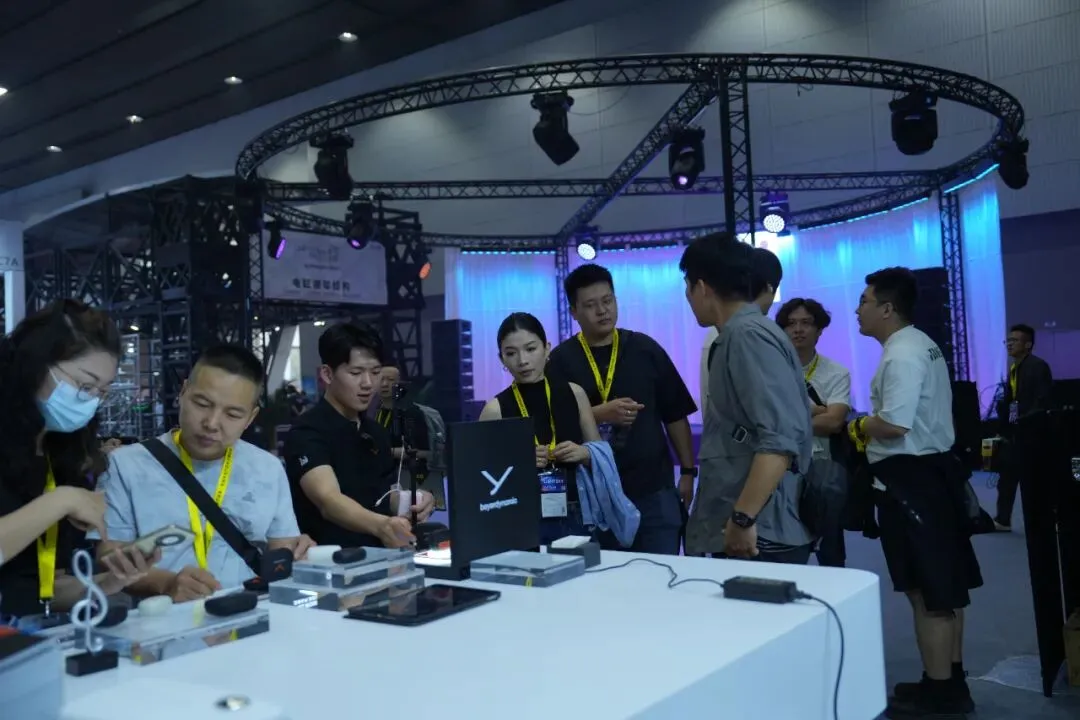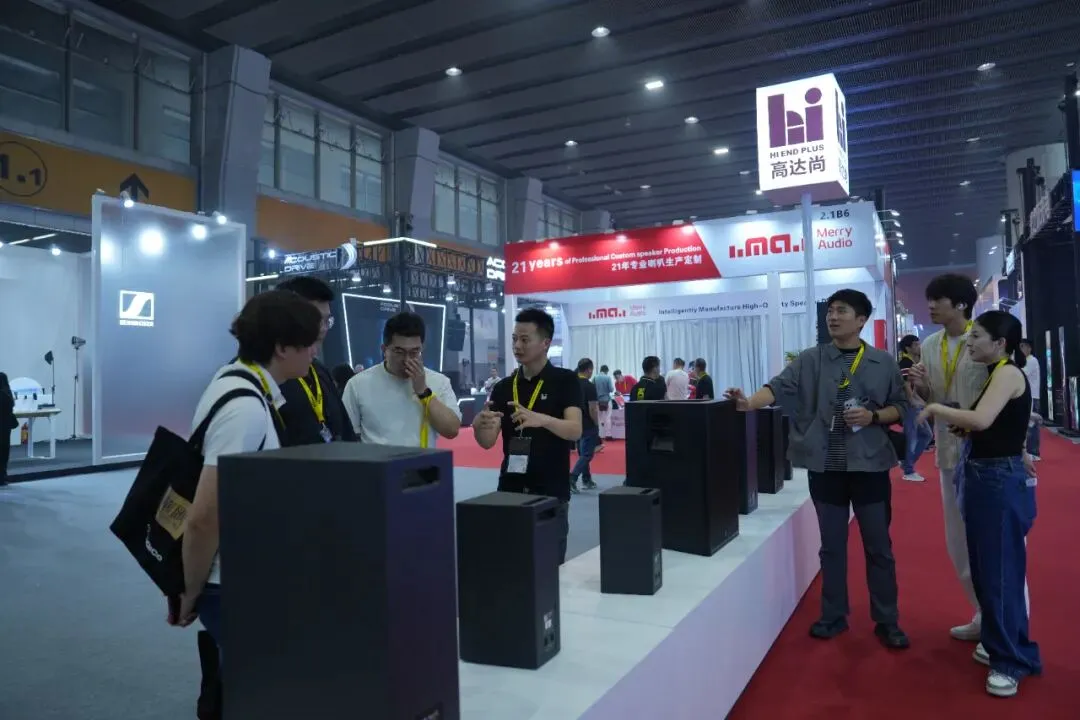 高达尚带来了多款高端音箱产品,如Xs紧凑型线性阵列音箱,K系列小型线性阵列音箱等一系列产品等,彰显其在音频领域的卓越实力,现场还邀请了Live乐队演出,吸引了众多观众驻足欣赏与体验高达尚沉浸式音箱系统的魅力。