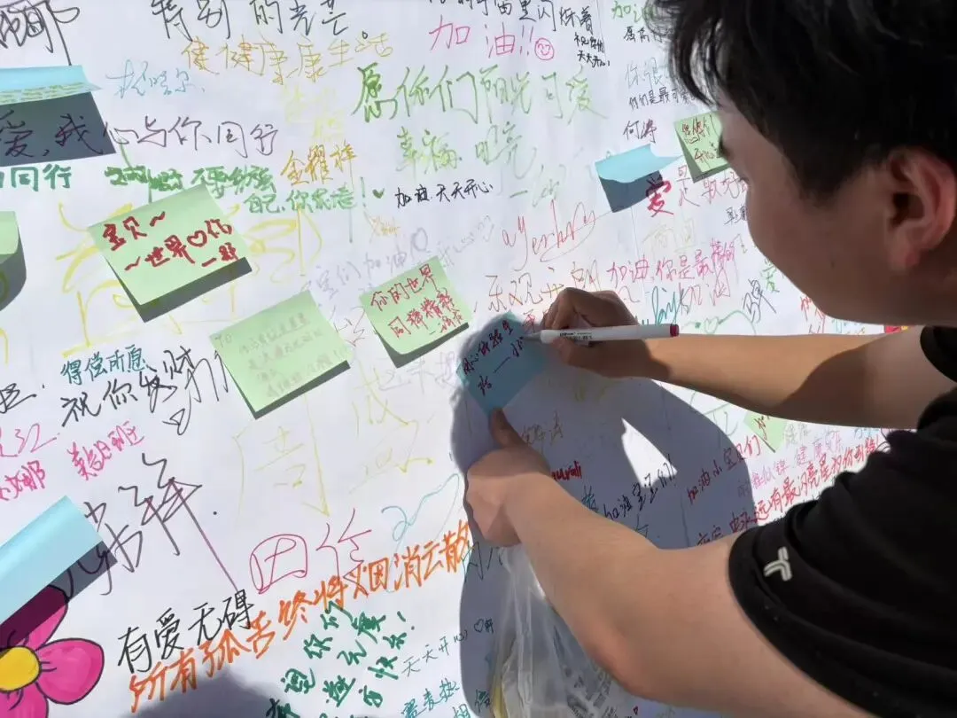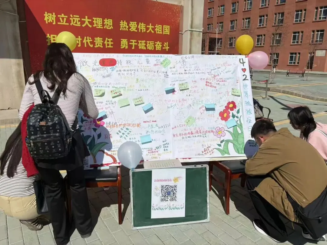 本次活动旨在向大家普及孤独症知识,消除对孤独症群体的偏见,让更多同学学会尊重、包容与关爱,现场精心设置了签字留念、礼品赠送等互动环节。同学们在互动中踊跃参与、认真投入,签字留念环节,知识问答环节,大家纷纷留下对孤独症儿童的美好祝愿,用文字传递温暖;志愿者为参与同学送上暖心礼品。同学们在活动中收获了知识与快乐,不仅圆满达成了预期的科普效果,更在心中播下了理解与关爱的种子,为校园注入了蓬勃的青春力量,让整个校园充满温情与正能量。