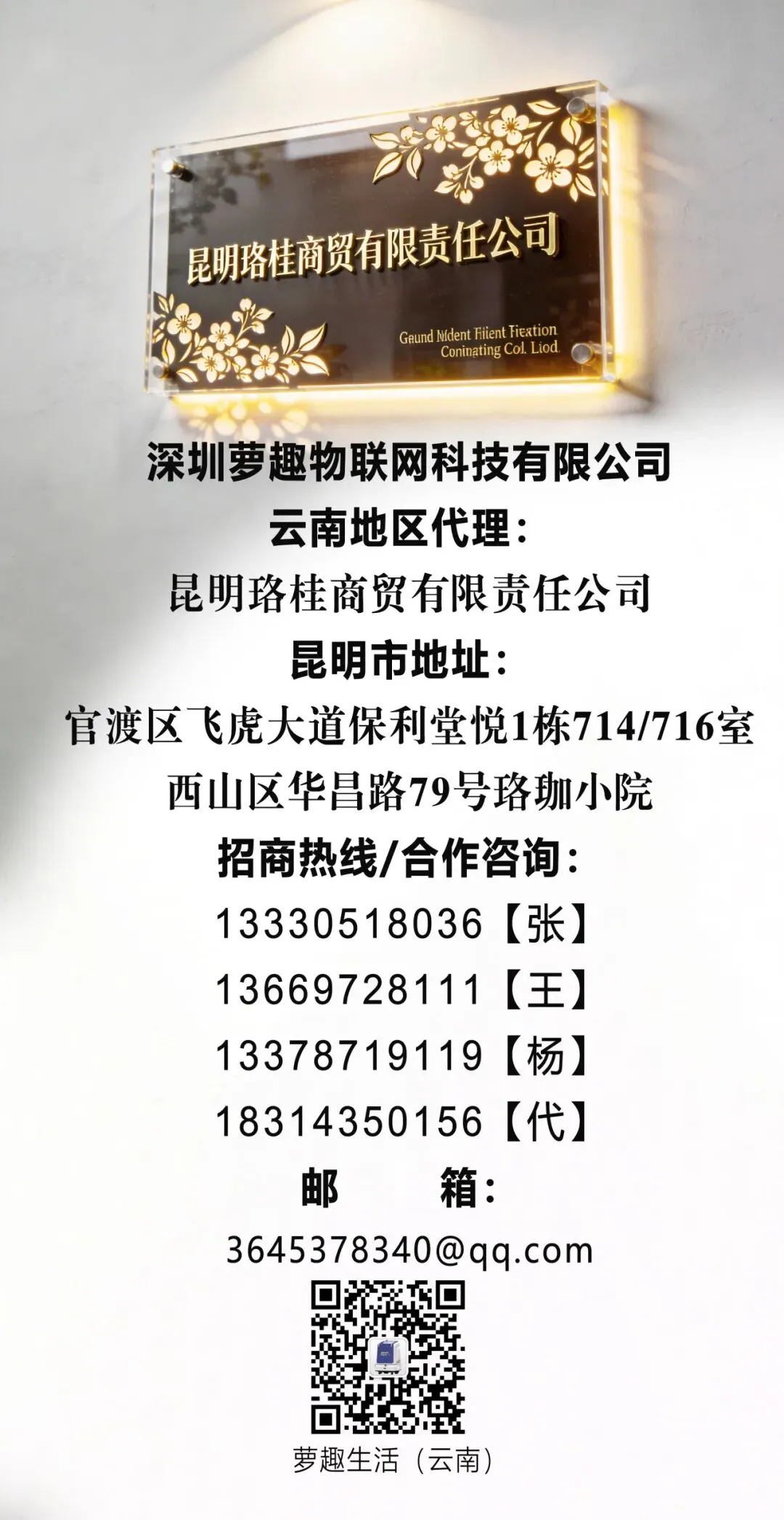 欢迎全国酒店业主扫码或致电咨询,与萝趣物联一起,把客房里的“沉睡空间”变成稳定增长的收益来源!