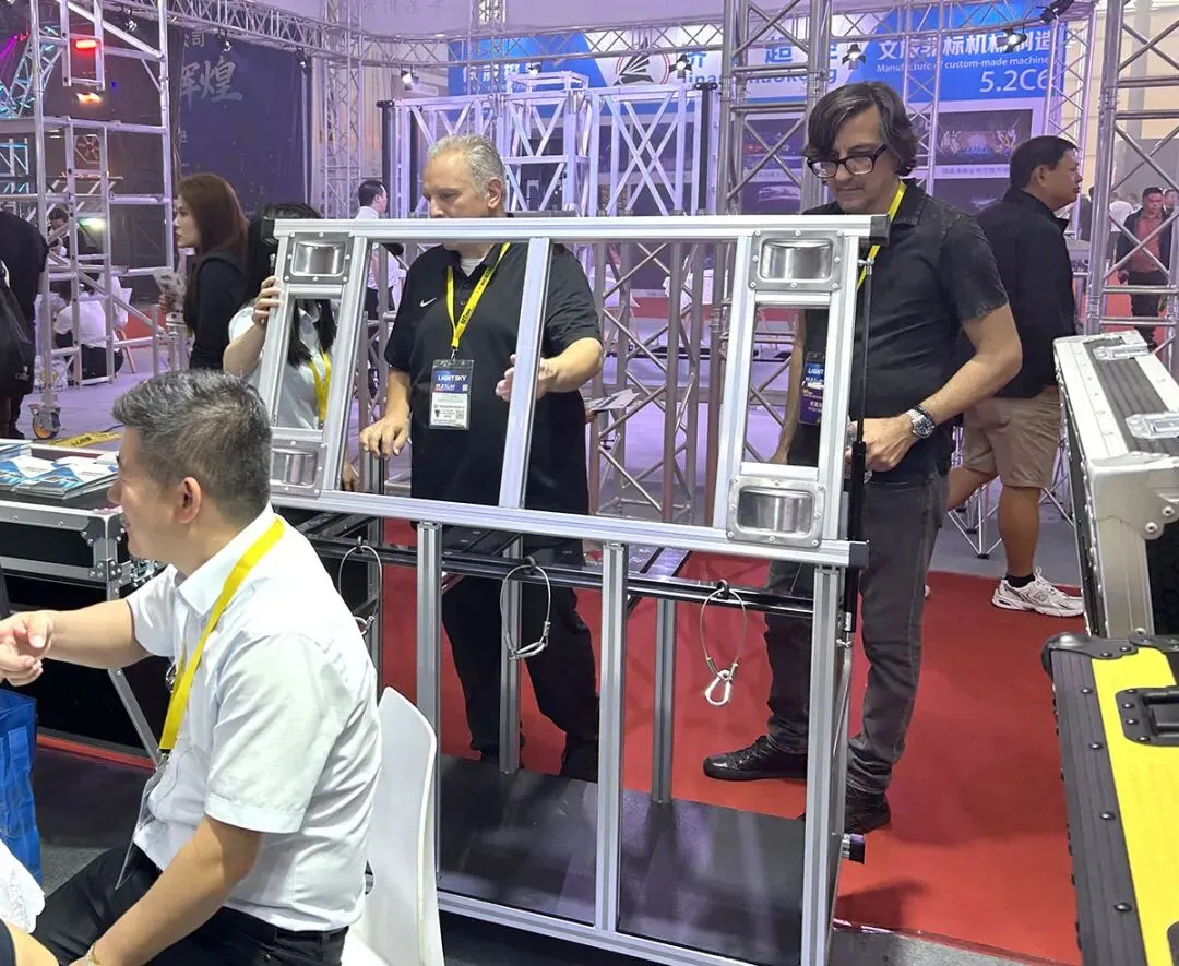 同时,泰明辉实业自主研发的舞台灯具周转车首次重磅亮相国内展会,凭借人性化设计、高效转运功能与坚固耐用特性,完美解决舞台租赁市场灯光设备转运繁琐、效率低下的行业痛点,大幅提升舞台搭建与设备周转效率,现场获得众多租赁商、工程商的高度认可与合作意向。