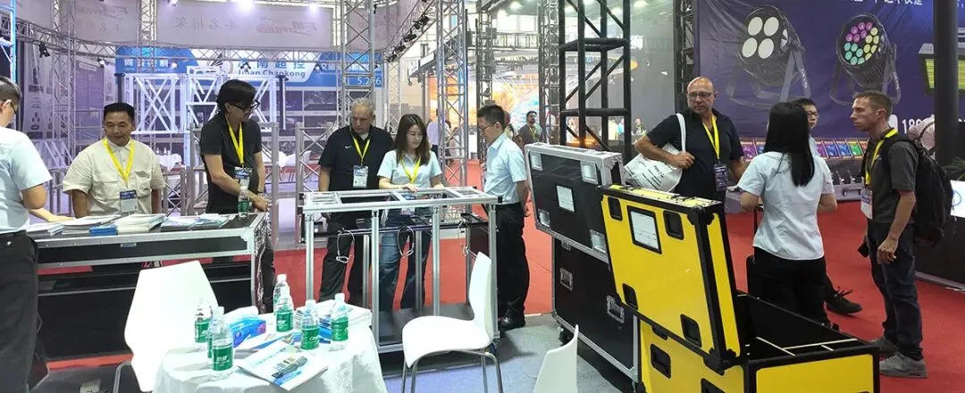 展会开幕首日,泰明辉展台客商云集、人流如织。来自全国各地及海外的演艺设备工程商、租赁公司、灯光音响企业等专业观众,纷纷驻足产品展示区,详细了解航空箱、配电柜及舞台灯具周转车的产品性能、技术优势与应用场景。公司专业技术团队与销售团队全程提供细致讲解与深度沟通,针对客商提出的定制化需求、技术难题等进行逐一解答,现场咨询洽谈络绎不绝,众多客商当场表达了强烈的合作意愿。