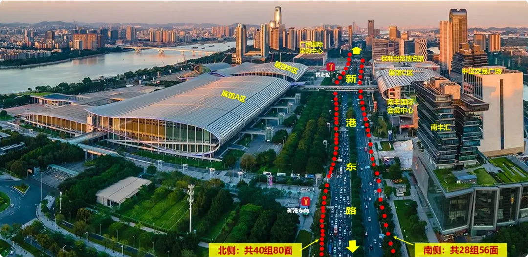 广州新港东路会展大道全覆盖灯箱媒体广告代理,广州琶洲广交会场馆外灯箱广告价格,广州新港东路大道68组136面灯箱广告服务