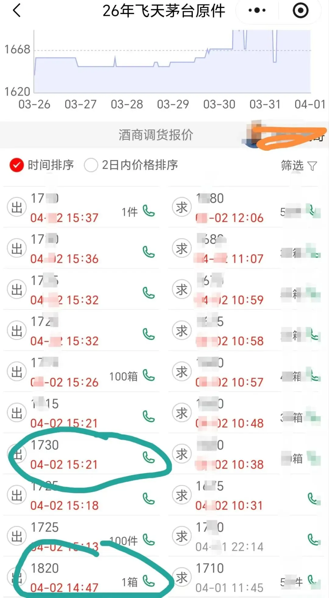 数据说话: 2026年飞天茅台原箱价格连涨2日,4月3日报1720元/瓶