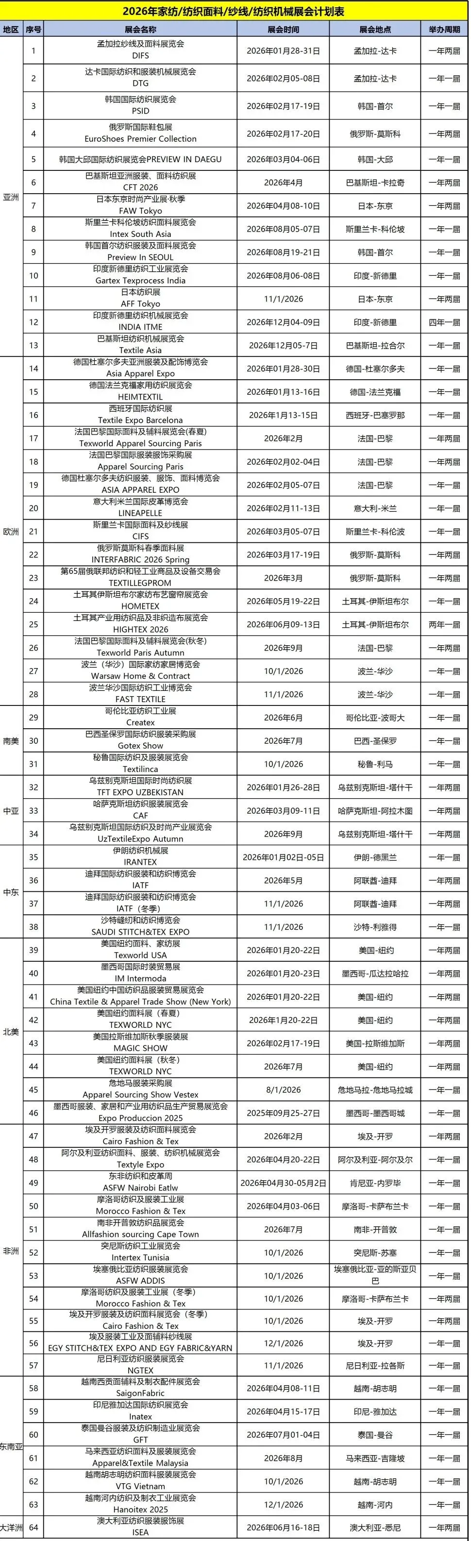 纺织机械展会计划表