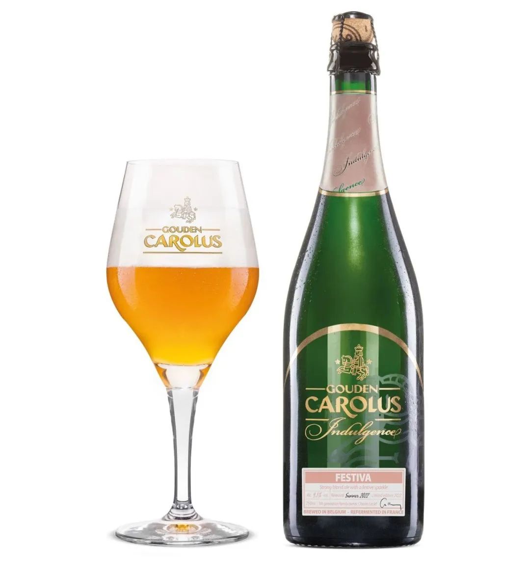 GOUDEN CAROLUS INDULGENCE 2022 – FESTIVA原料:水、大麦麦芽、小麦麦芽、白砂糖、酵母、啤酒花风味:气泡绵密饱满;有着清爽的烤面包、草本植物、柑橘类水果的香气;口感较干,有黄油饼干、青草、水果的香味,淡淡的麦香;余韵悠长,收结非常干净。(因人与人之间有味觉差异,所以作者的风味描述不一定符合每个人的实际饮用感觉,仅供参考。)评价:和一般的啤酒乃至大部分精酿啤酒相比,其风味和酒体都是非常有特色的,值得品尝。另外因为是用漂亮的香槟瓶装瓶,外观非常高大上,相当适合送礼。对这款酒有兴趣的话,点击这里可购买,上新期间8.5折优惠。此外,我们还准备了这款酒搭配其它佳酿的套餐,有更好的折扣,买得越多省得越多!点击这里或左下角“阅读原文”去购买吧!全文完。