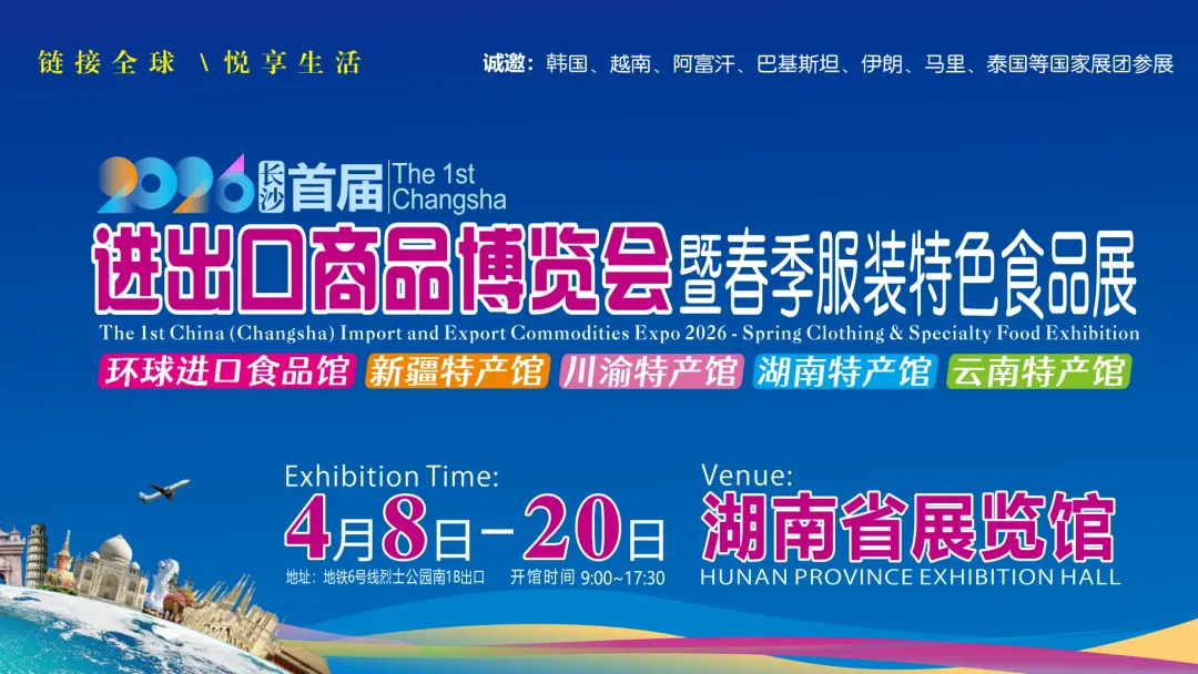 长沙的朋友们,注意啦!一场汇聚全球精品、荟萃华夏风物的年度盛宴,即将在4月拉开帷幕——2026长沙首届进出口商品博览会暨春季服装特色食品展,4月8日至4月20日,在湖南省展览馆,陪你嗨玩13天!更有重磅福利,人人都能享!