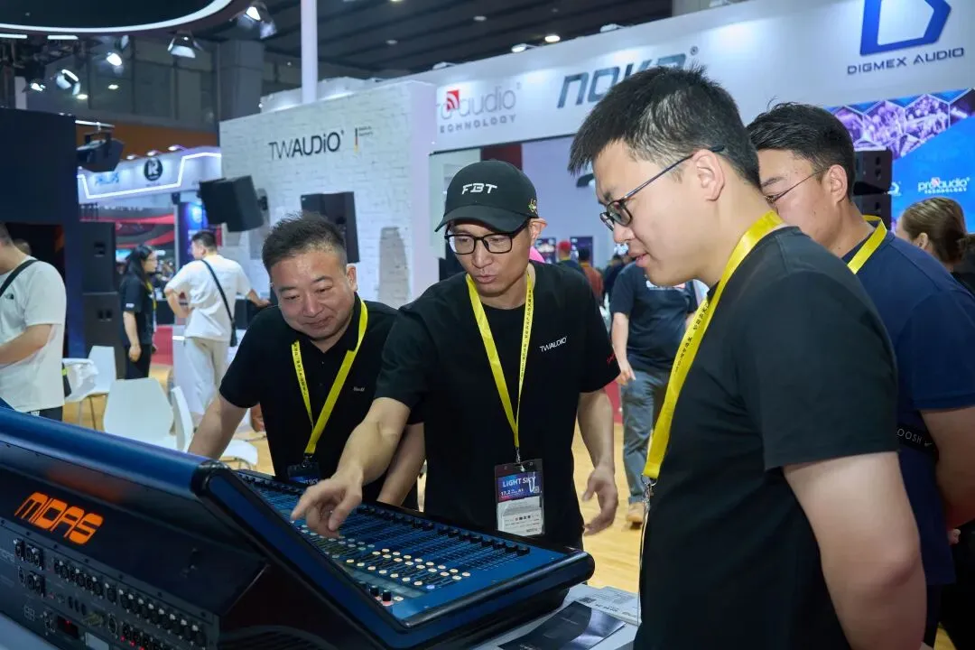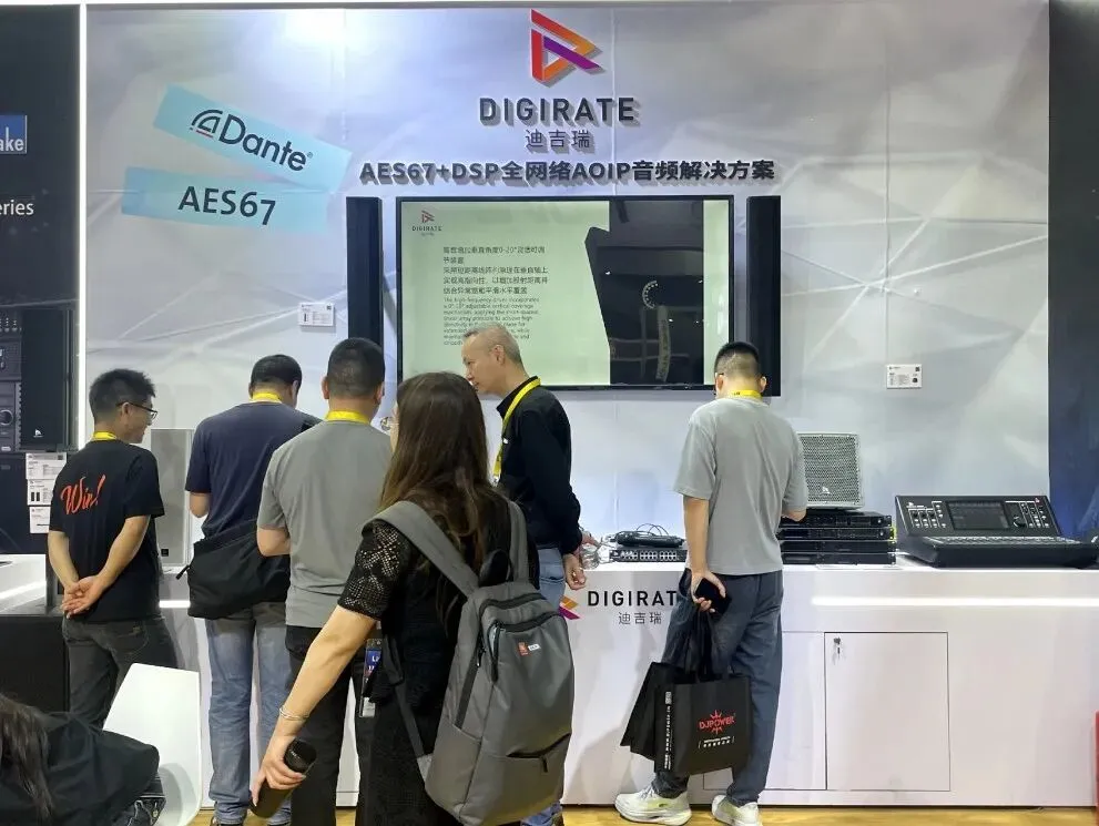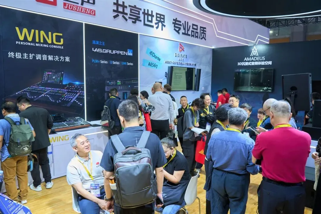 本次展会,巨声视听携多个国际顶尖音频品牌重磅登场:德国TWAUDiO顶级音响、奥地利AMADEUS主动声学&沉浸式音频、美国JBL Pro SRX900巡演级有源线阵列及最新推出的顶级点声源、英国MIDAS HD96系列数字调音台、WING数字调音台、瑞典LAB.GRUPPEN PLM+系列/D系列功放、Lake LMX系列高性能数字音频处理器、英国MARTIN AUDIO玛田ADORN系列以及巨声视听自主品牌DIGIRATE 迪吉瑞AES67+DSP数字网络音频解决方案等悉数亮相,凭借出色音质与前沿技术,吸引众多嘉宾驻足品鉴、深入交流。