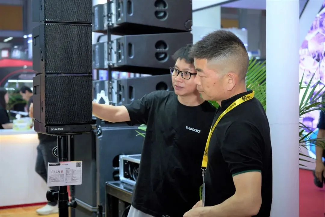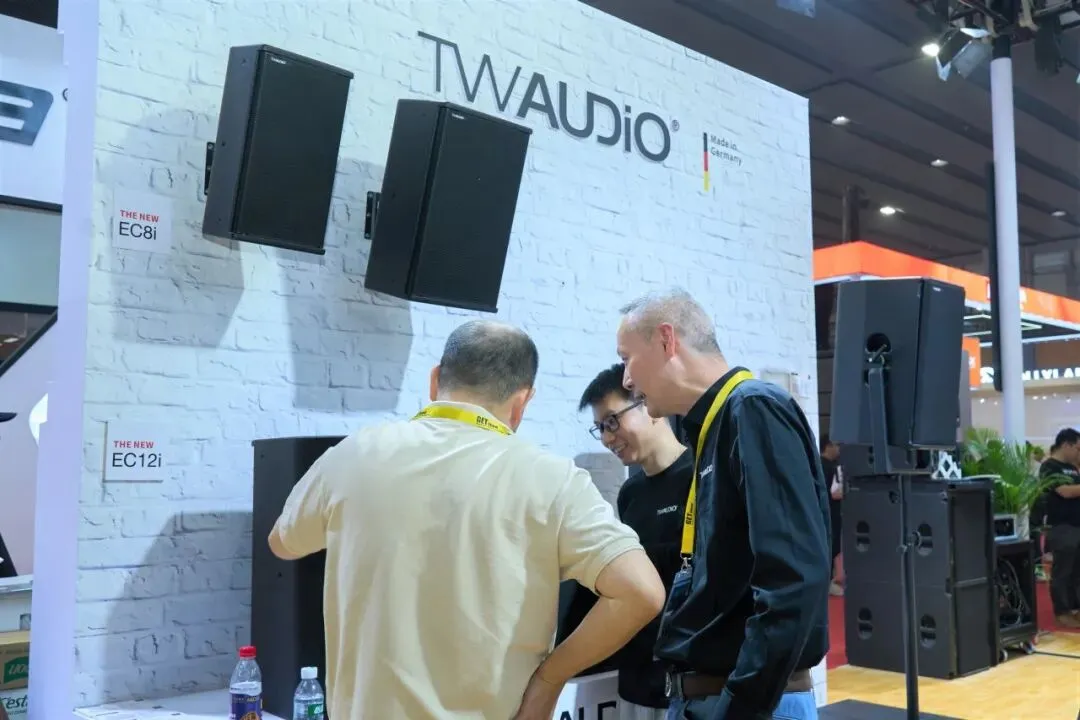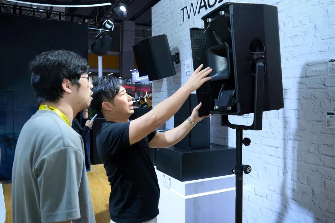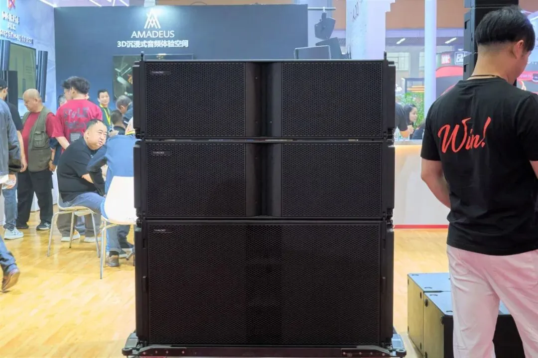 展位现场亮点十足,此次展会呈现的VERA50是德国TWAUDiO全新推出的双12寸旗舰四分频线阵列系统,其定位高于TWAUDiO广受好评的 VERA36,堪称顶级之作。这款紧凑型四分频线阵列融合了最先进的扬声器技术:两个强劲的 12” 低频驱动单元、四个采用短号角加载的 6.5” 中频驱动单元(带来直接而震撼的中频表现)以及两个双同轴高频单元。每个高频单元均采用同轴排列,包含两个音圈(3.5”和 1.75”),这种设计可实现卓越的瞬态响应、通透度、即时性和远距离投射能力。