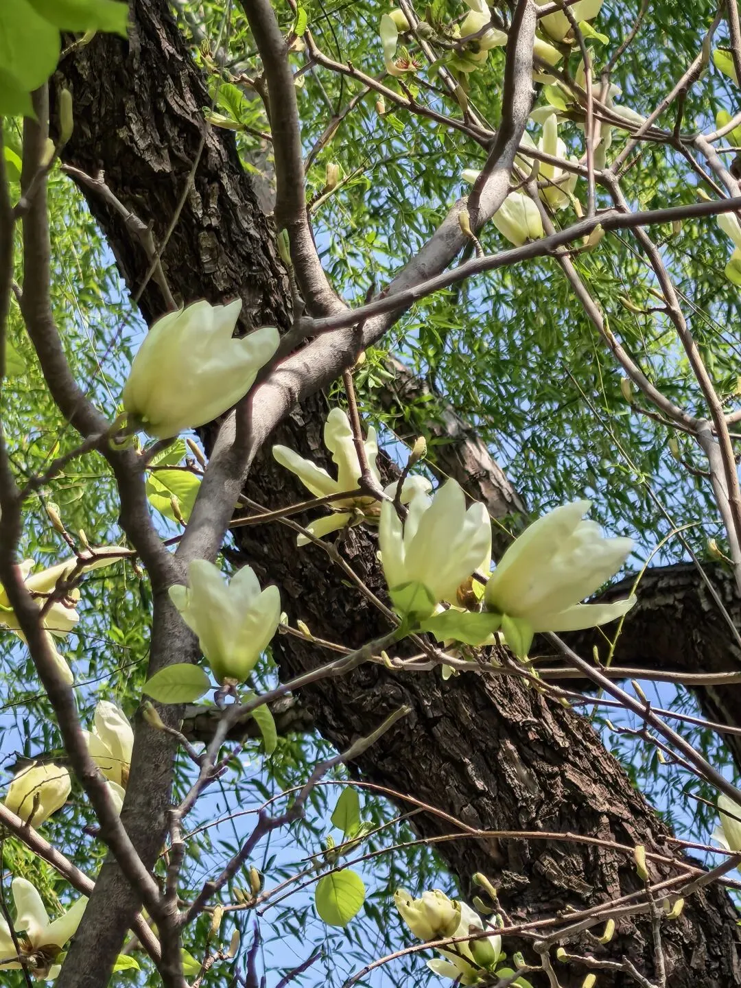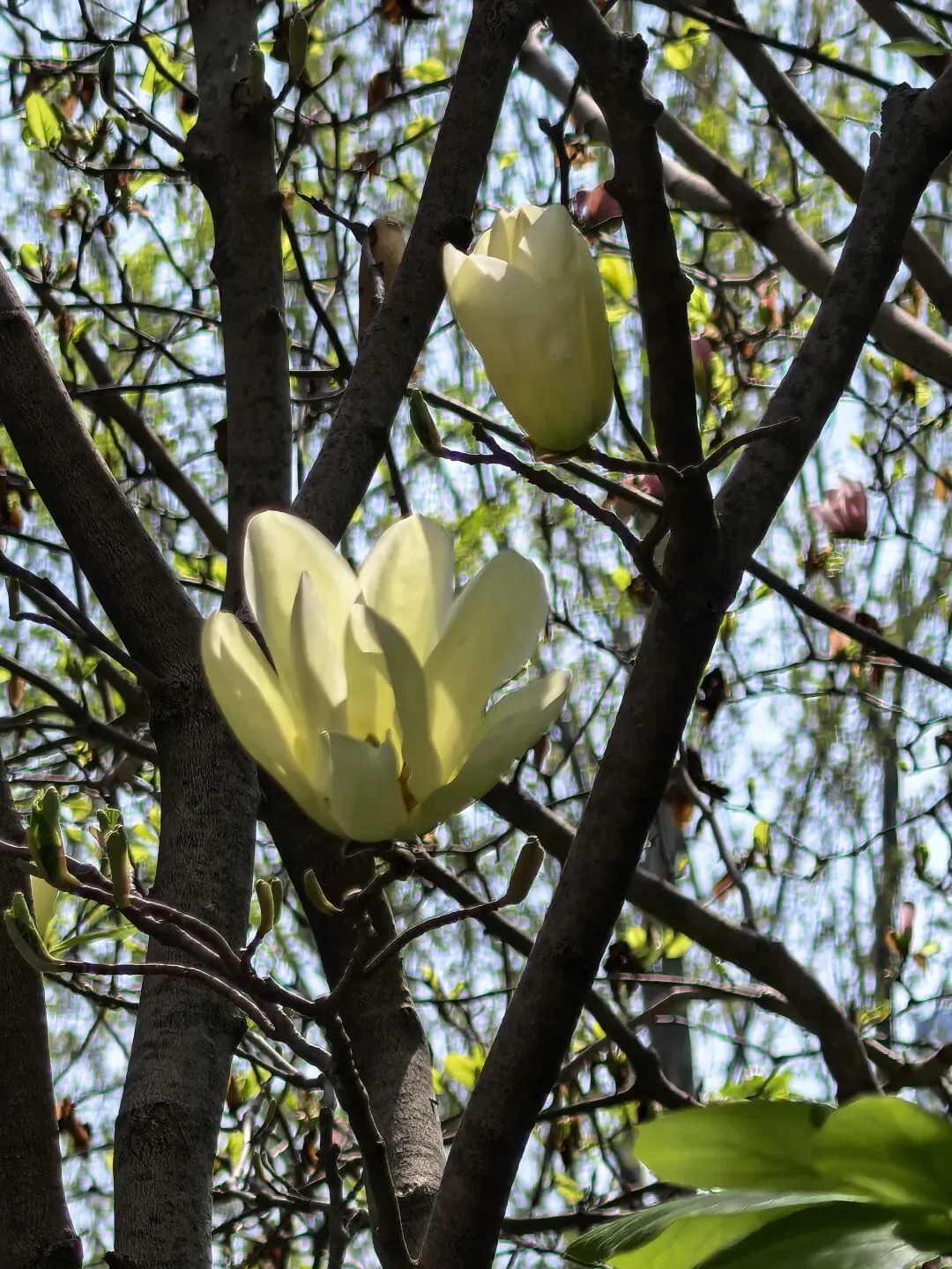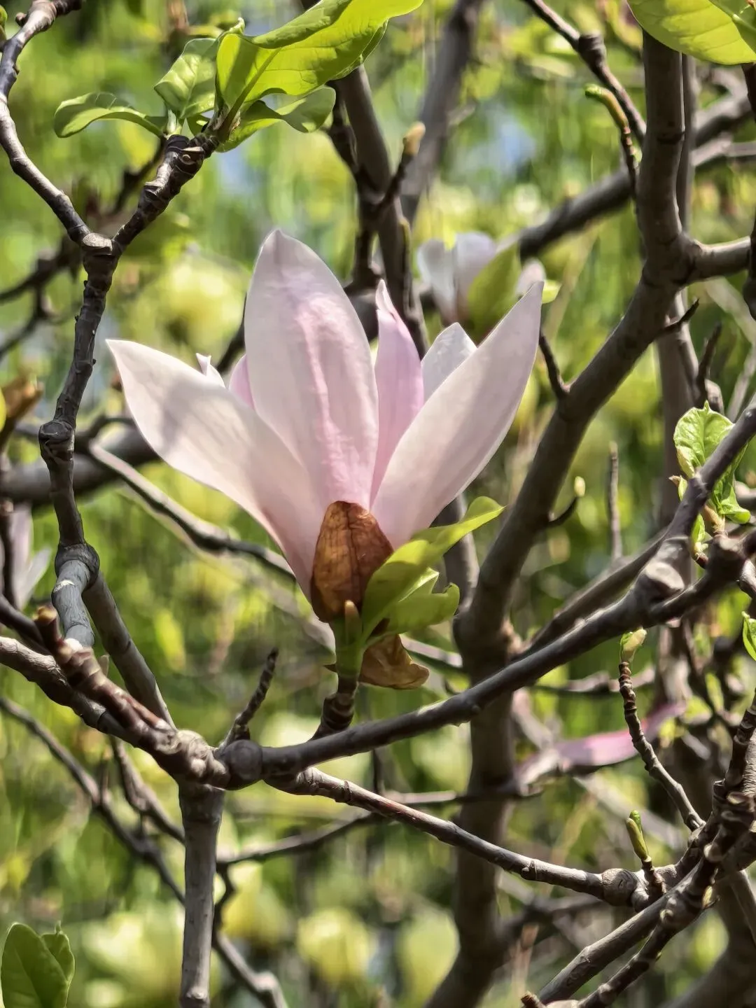 玉兰花已然步入凋零期,大部分花瓣渐渐飘落,可总有几株玉兰,偏偏不愿与温柔的春日告别,枝头残存的花瓣奋力舒展着,像是在低声诉说着对春天的不舍,别有一番凄婉的美感。
