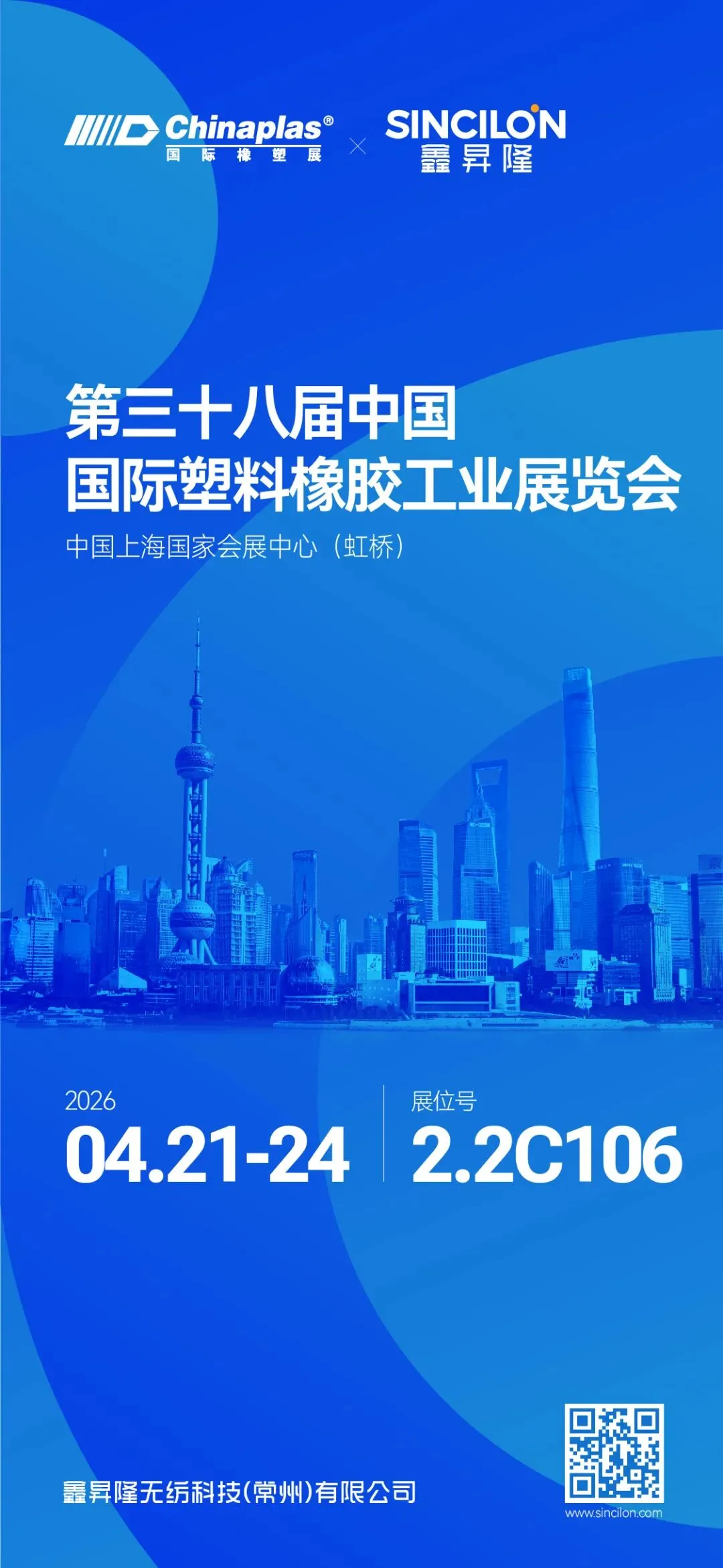 2026年4月21日至4月24日,鑫昇隆公司将参加CHINAPLAS 2026国际橡塑展,即第三十八届中国国际塑料橡胶工业展览会,热忱邀请广大朋友参观交流。