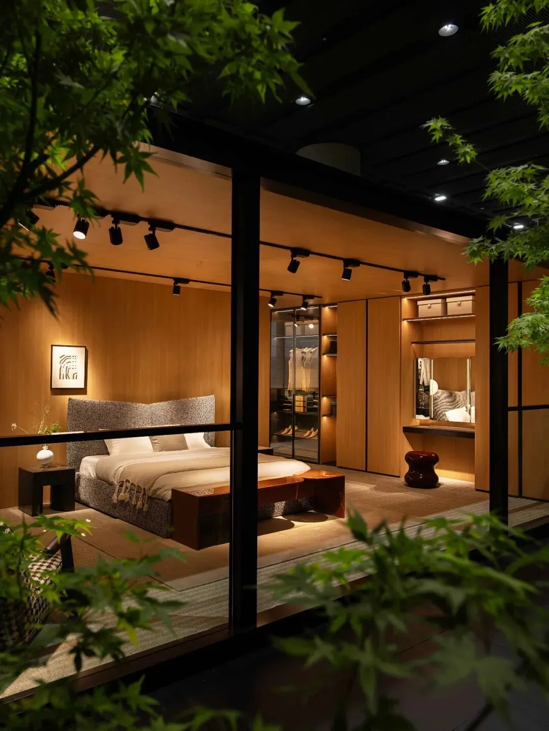 空间叙事正成为品牌表达的重要手段,展览不再仅是产品陈列,而是转向沉浸式体验与情境营造。以CAMERICH锐驰为例,其“模型之家”通过X System与居住原型的重构,将现代模块化设计与传统院落精神结合,让观众在空间中感受设计理念与居住本质的对话;汉格家居则在简约与自然主义之间探索空间中生活方式的生长可能;MEXTRA美萃家居则以“时间的花园”为线索,将时间与空间的流动转化为可被感知的身体体验;各色家具通过光影、图腾与结构构建沉浸式场景,使家具、生活与观者的动作产生细微互动。