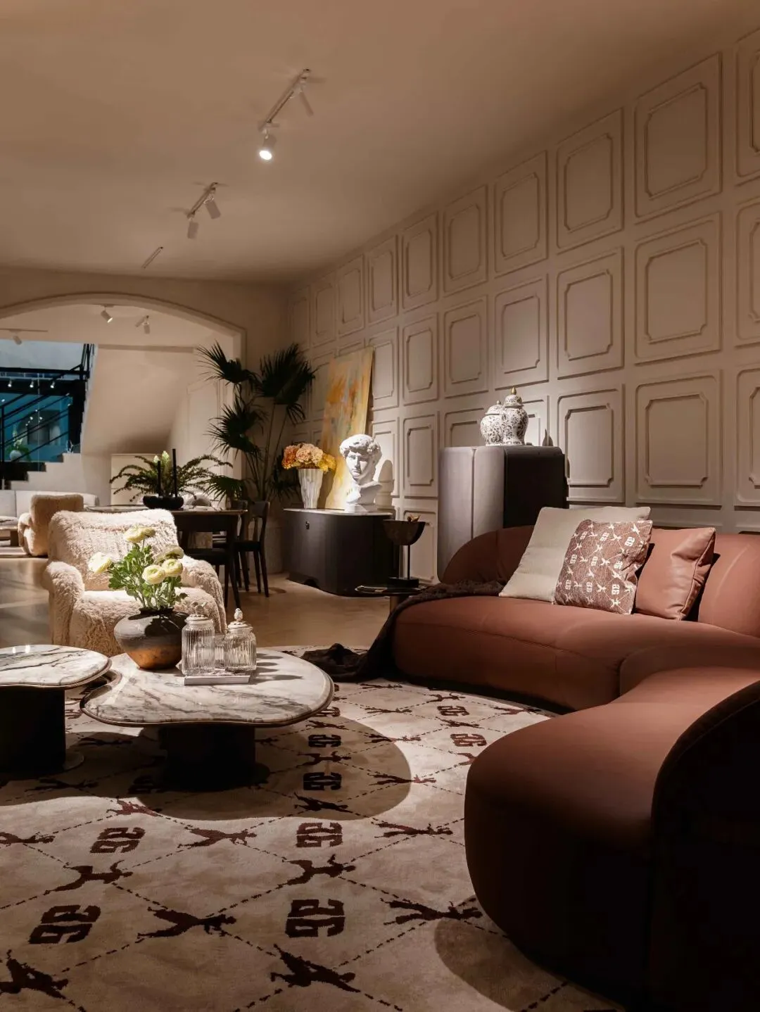家具与艺术之间的边界正变得愈发模糊,一种“家具艺术化”的趋势逐渐清晰,家具不再仅仅是功能性的产品,而开始向具有审美表达与收藏价值的设计对象转变。以DAaZ、米洛、巴博罗、艾伦斯特、设想与静谧为代表,品牌主动将家具置于艺术语境之中:DAaZ通过比例、材料与形式实验,使家具成为情感与记忆的载体;米洛家居与艾伦斯特则从高端居住与审美生活的角度出发,通过材质、比例与细节的强化,使家具逐渐具备接近艺术品的感知强度与文化意味。巴博罗和静谧以“家居艺术现场”的方式,将空间叙事与艺术表达融合;设想则更进一步,将艺术家具、器物与雕塑并置,直接消解设计与艺术的界限。