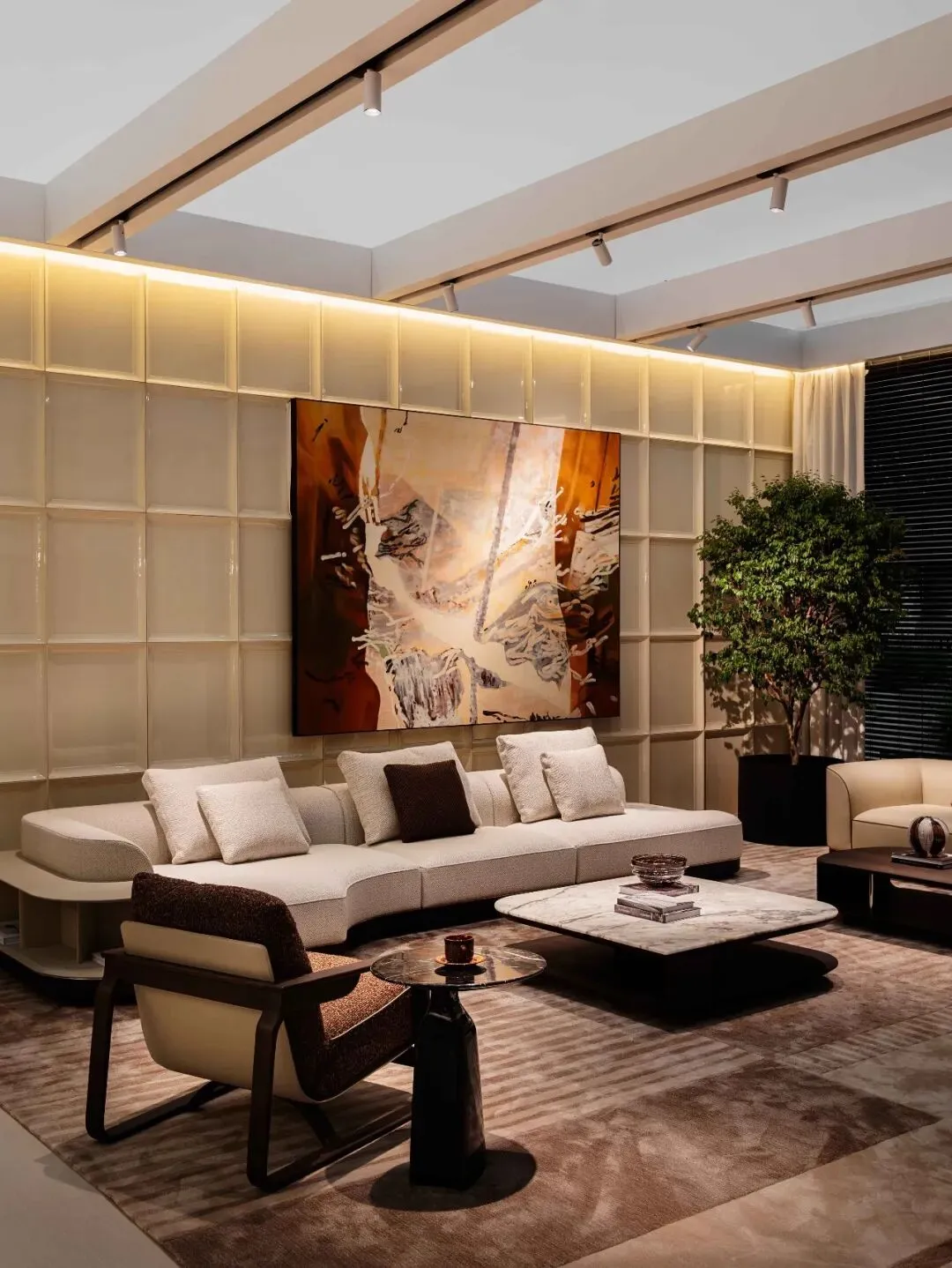 中国家居品牌正经历从“单件产品制造”向“生活方式构建”的清晰转型。以HC28maison、前进觅美、康耐登、南洋迪克、迪信、慕尚威登、KBH 为代表,品牌不再以单一家具为展示核心,而是通过空间叙事与系统整合,呈现一种可被感知与进入的生活方式整体:从家具、灯光、材质到动线与氛围,构成完整的“生活场景”。与此同时,前进觅美与慕尚威登则进一步将审美与价值观内化为品牌表达,将“静奢”“艺术化居住”等观念转译为空间体验;而迪信家具则从制造积淀与定制系统出发,在稳定工艺与整体解决方案之间寻找新的平衡。