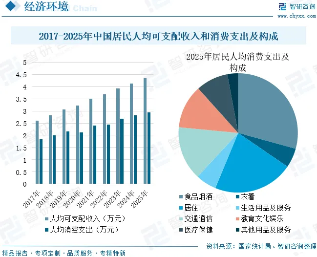 近年来,随着我国国民经济持续增长、就业形势总体稳定、居民收入水平稳步提高,加之社会保障体系不断健全完善,居民人均可支配收入与消费支出实现同步增长。国家统计局数据显示,2025年全国居民人均可支配收入为4.34万元,同比增长5%;居民人均消费支出为2.95万元,同比增长4.4%。其中,2025年全国居民人均交通通信消费支出4306元,增长8.3%,占人均消费支出的比重为14.6%,支出规模仅次于食品烟酒和居住消费。这一消费结构表明,居民对便捷出行与高效通信的需求持续走强,交通通信已成为居民生活消费的重要支撑板块。作为该领域的重要组成部分,智慧停车凭借其在提升泊位周转效率、优化出行体验等方面的显著优势,正迎来日益广阔的发展前景。