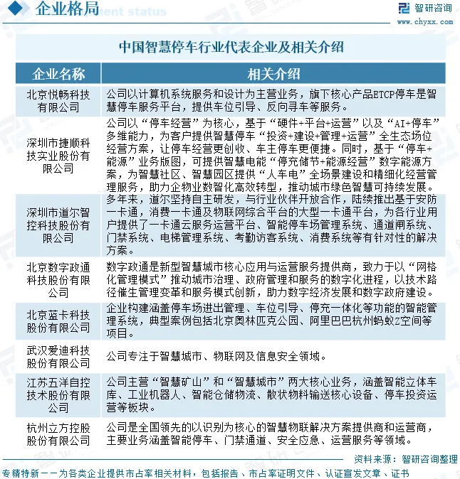 智慧停车行业企业格局和重点企业分析