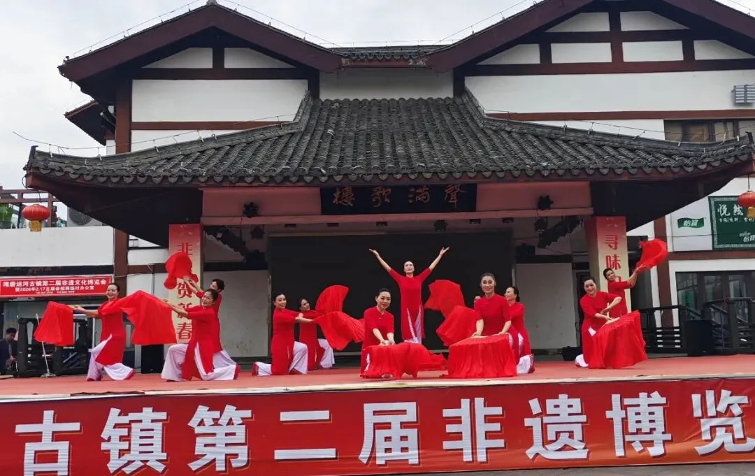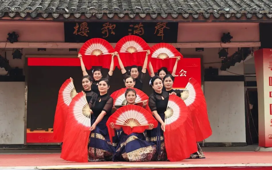 闭幕式上,华之韵艺术团、春之韵乐团、黄梅飘香剧社等团体联袂献艺,为现场群众呈现了一场兼具传统韵味与时代活力的文化盛宴。演出在气势恢宏的开场舞《东方红》中拉开帷幕,激昂的旋律、整齐的舞姿瞬间点燃现场氛围。诗朗诵《非遗传承 薪火未央》深情诉说非遗传承故事,礼赞代代相传的匠心精神,引发全场共鸣。