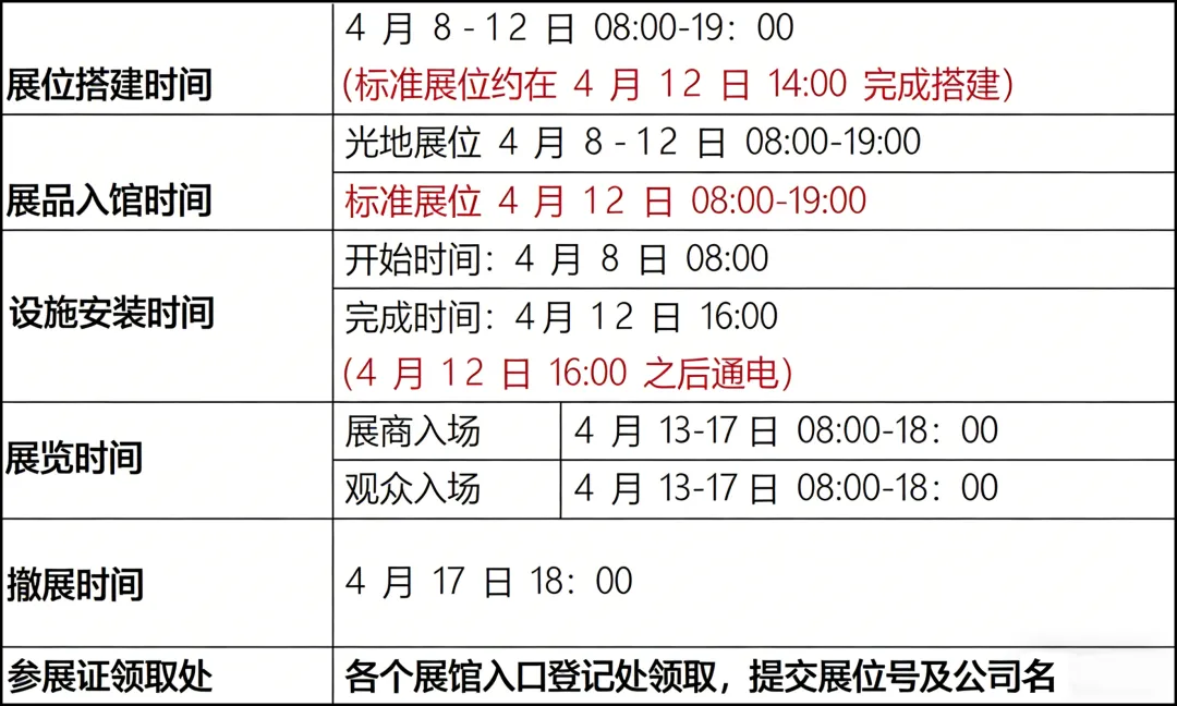 展会时间:2026 年 4 月 13 日(周一)— 4 月 17 日(周五),共 5 天