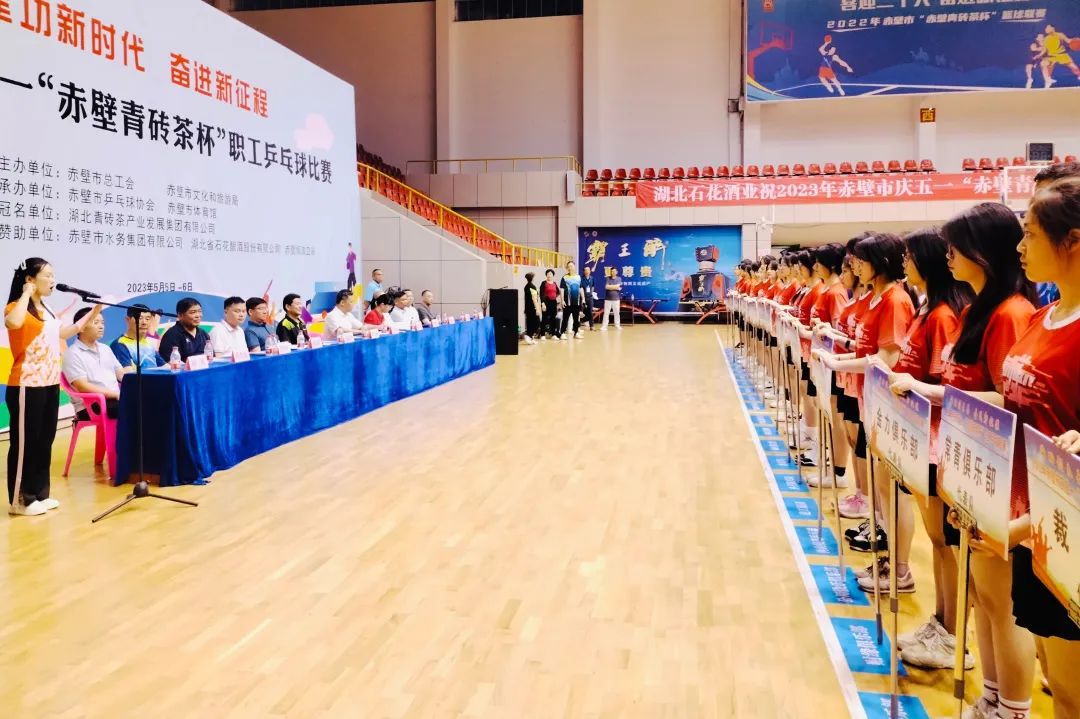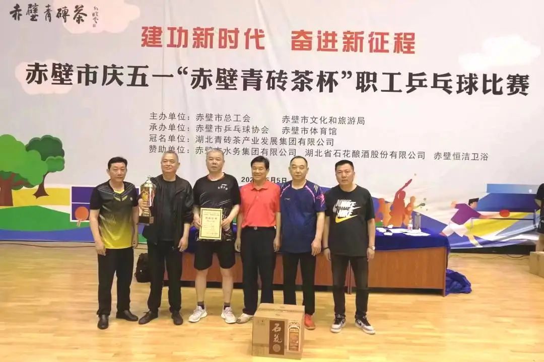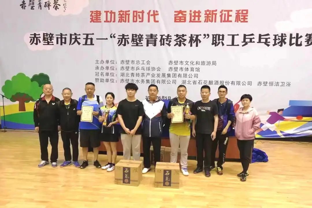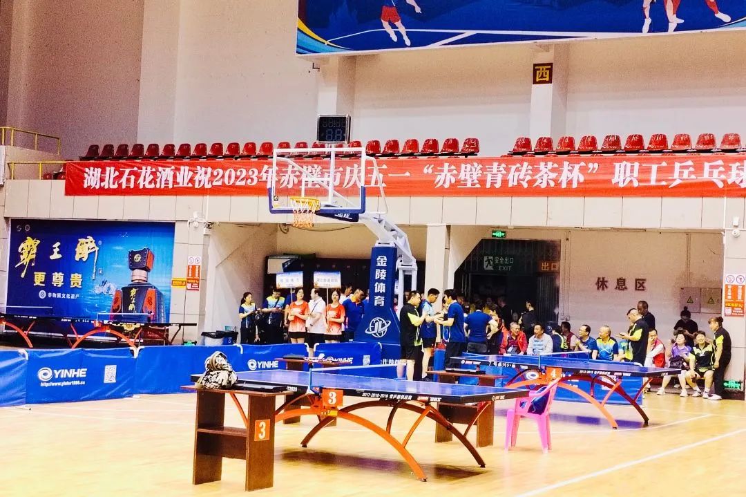 5月5日,由赤壁市总工会、赤壁市文旅局主办,赤壁市乒乓球协会、赤壁市体育馆承办的2023年赤壁市庆“五一”“赤壁青砖茶杯”职工乒乓球比赛,在赤壁市体育馆开赛。湖北石花酒业倾情赞助了本次比赛。