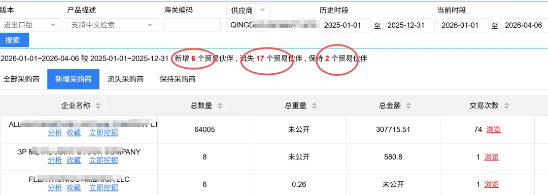 这是一个10年老外贸前辈的分享,感触很深。好多外贸人盲目跟风,高价跟风买昂贵海关数据,说到底,工具只是辅助,关键还得自己肯钻研、会落地深耕。我的想法很简单,通过海关数据,我核心就抓4 件事:3:盯着自己的老客户,防止其流失,找二次开发价值。海关数据留存客户交易记录,输入 HS 编码或关键词,就能快速锁定进口商,再按产品、编码筛选精准客户。客户在于精,不在于多。有海关数据,筛客能省下大把时间。没它的话,谷歌搜上百个客户、耗上一周,可能全不是真实采购商,纯白费功夫新人缺客户、没经验,难找到真实采购商。用海关数据,直接锁定同行优质客户,再发邮件、打电话、加社媒深耕开发。在海关数据,有个好用功能,就是可以一键查同行新增和丢失的客户。老客户虽然也可能被同行挖走,所以我们要利用海关数据这个情报员,定期去查看自己老客户的供应链,采购产品的变化,防止其流失。只需要输入公司名,就可以一键汇总采购商的供应商 ,采购的产品,采购的国家等数据,快速了解老客户。提前摸清市场行情,精准判断区域值不值得深耕,心里更有底海关数据对我最有用的就是拿到真实进口商名单+市场判断不少人用不好,不会用、又盲目跟风入手高价海关数据,最后钱花了没效果。其实建议先选试错风险小的海关数据尝试。顶易第七届海关数据拼团活动,顶易默默坚持做了整整 7 年,做业务超 5 年的老手,很多估计都听说过,诚意不用多说~试错风极低,可以先从小风险方案做起。文末有干货分享。更多详情,请添加客服VX: