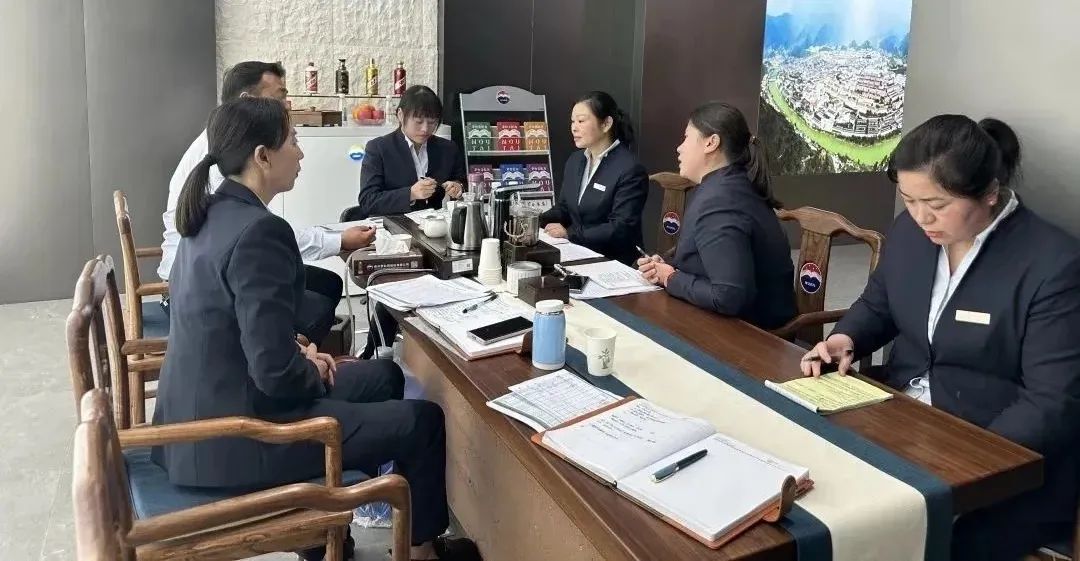 各组到达县城门店后,首先对店内的各项工作进行了查看和指导,调研了解全员岗位创新工作、“强双基工程”方案学习落实执行情况,并传达了关于开通集团“董事长信访通道”的通知内容,随后集中店内值班人员召开经营管理分析会。