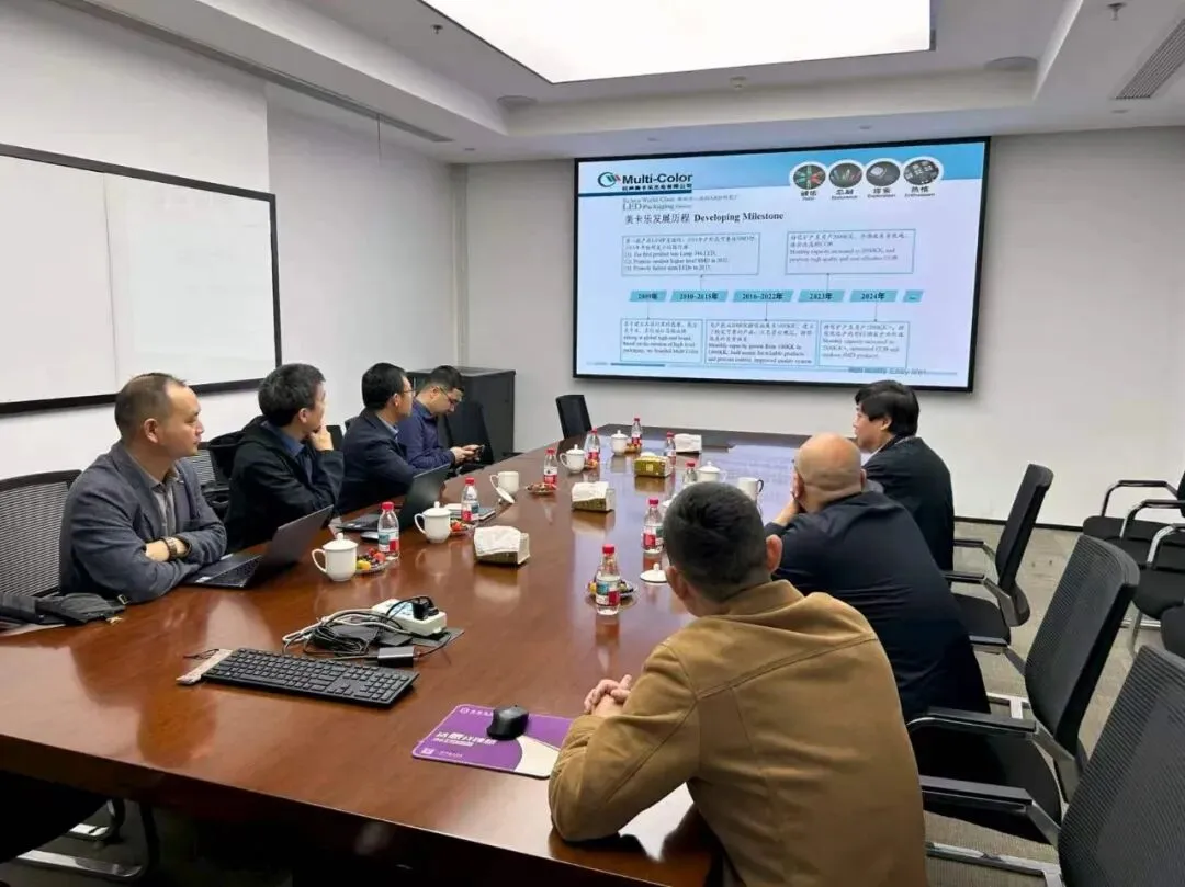 座谈会上,江忠永会长首先介绍了美卡乐的发展历程,并阐述了公司“做世界一流的LED封装厂”的宏伟愿景及实现路径。他坦言,美卡乐对产品品质的极致追求,在一定程度上影响了其市场扩张速度。面对当前市场,美卡乐正积极调整战略,在坚守品质底线的前提下,全力发力COB封装市场,致力于让高品质的COB大屏产品走进更多终端用户。江会长深耕LED行业多年,从芯片到封装,其对产业链的深刻理解和对产品品质的执着追求,为美卡乐的稳健发展奠定了坚实基础。调研组对美卡乐的发展前景表示高度认可,并结合浙江省经信领域相关政策,鼓励美卡乐在现有“专精特新”企业的基础上,进一步聚焦核心技术,早日冲击国家级专精特新“小巨人”企业称号,为浙江LED产业的高端化发展树立标杆。