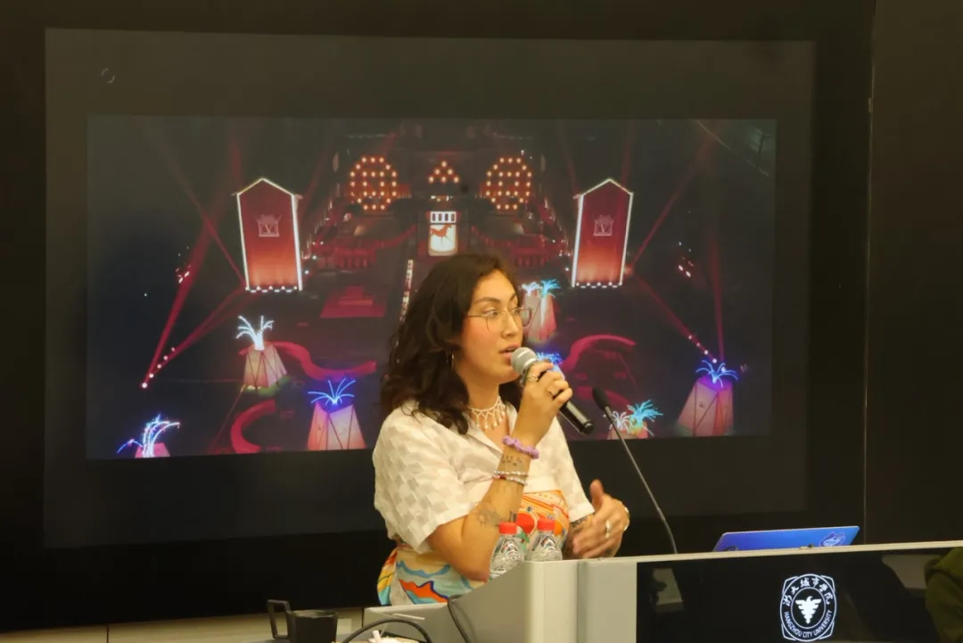 胡梦涵分享了AUDITOIRE长期服务上海时装周、LV、Cartier、Google等全球顶级品牌的经验,业务覆盖奢侈品发布、科技峰会、空间设计、数字传播等全链条服务。为了让同学们更直观地理解国际品牌活动的策划逻辑与落地方法,胡梦涵结合新加坡灯光节、迪拜世博会、北京高级珠宝展等案例,为同学们讲解了跨文化策展、品牌体验设计和可持续活动运营的核心方法,并解析了多元一体的行业新模式。