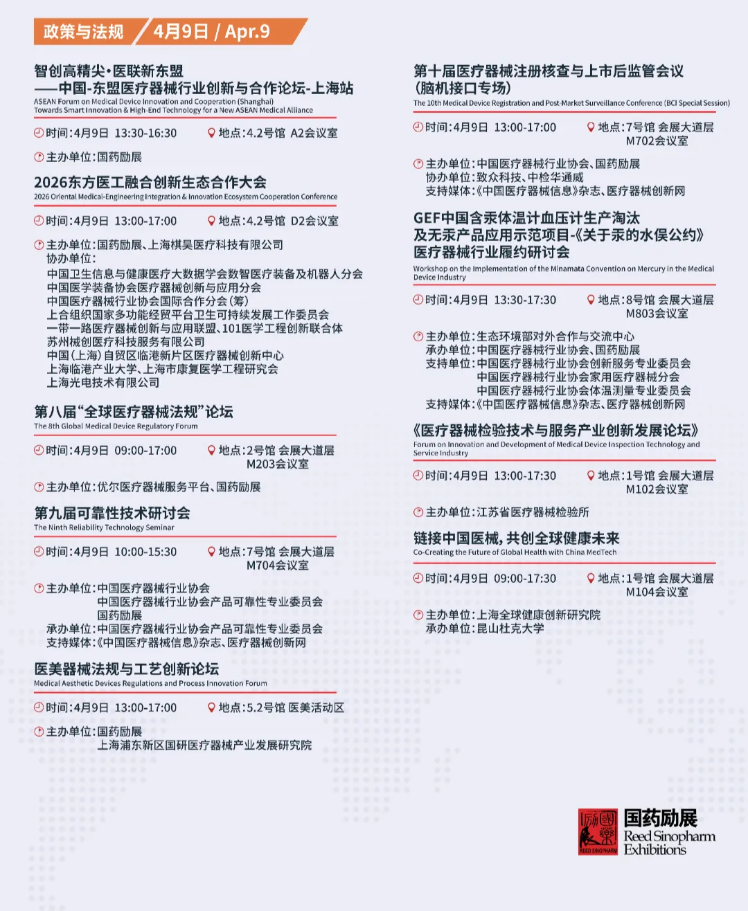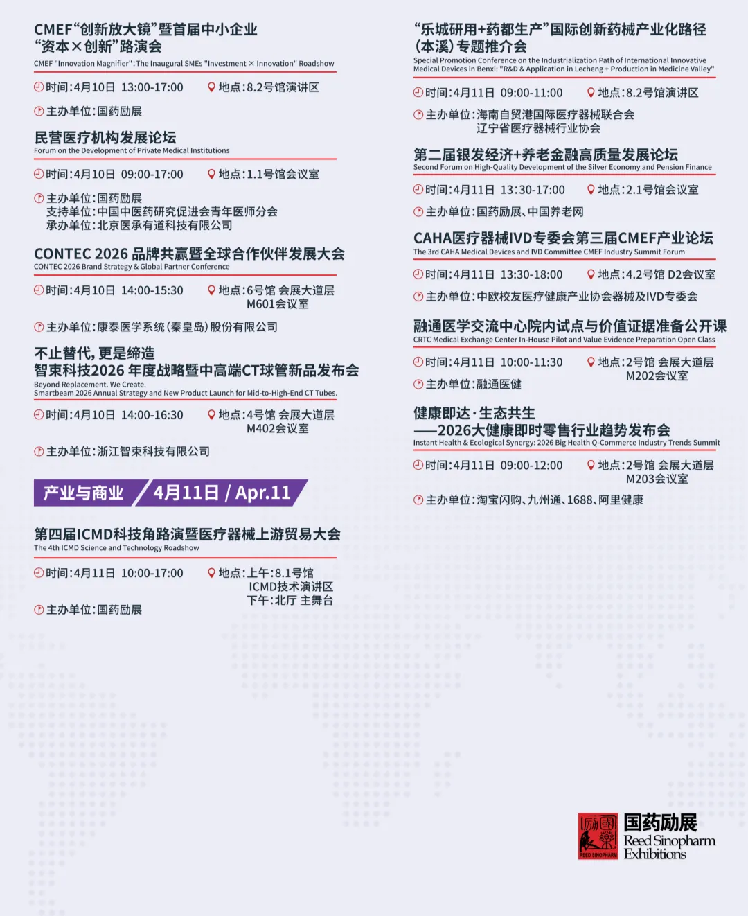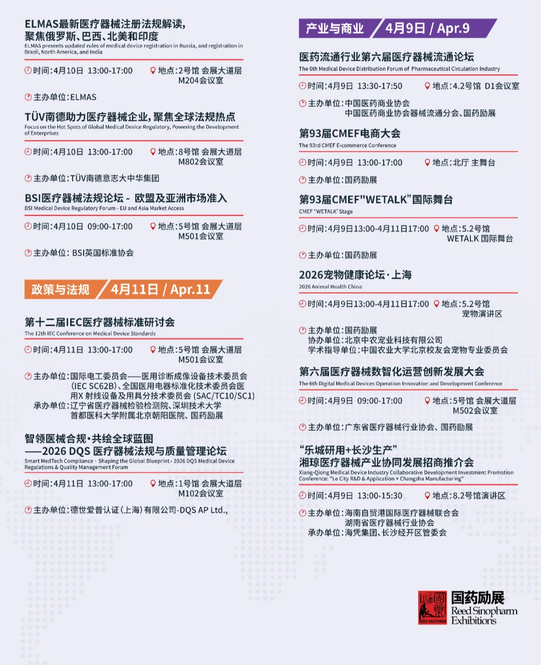 第93届中国国际医疗器械博览会(CMEF)作为医疗健康产业的“风向标”,CMEF MEDCONGRESS 会议矩阵全新升级,本届展会聚焦产业发展核心需求,打造覆盖技术与创新、临床与应用、政策与法规、产业与商业四大板块的近百场会议活动,联动产学研医政资全链条权威力量,为全球医疗健康产业高质量发展搭建多元对话与协同合作的平台。