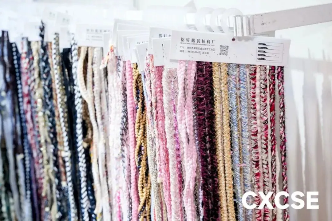 辅料是服装的"点睛之笔",虽小却至关重要。展区集中纽扣、拉链、标牌、蕾丝等各类辅料配件。随着个性化消费兴起,特色辅料需求激增,环保可降解辅料也成为行业新趋势。