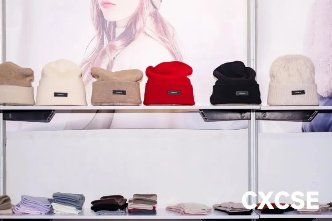 配饰是打造整体造型的关键。展区有各类面料、款式的帽子、围巾及手套产品,展现多样化工艺与设计风格。功能性防晒帽、时尚围巾等热销产品应有尽有。
