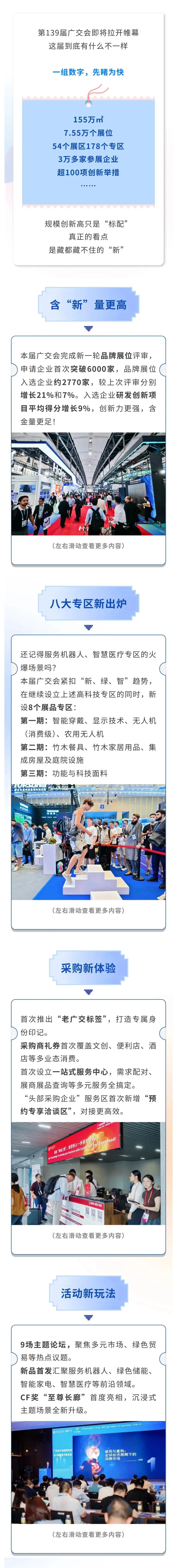 第139届中国进出口商品交易会(广州广交会)将于2026年4月15日至5月5日在广州举办,展览总面积约155万平方米。