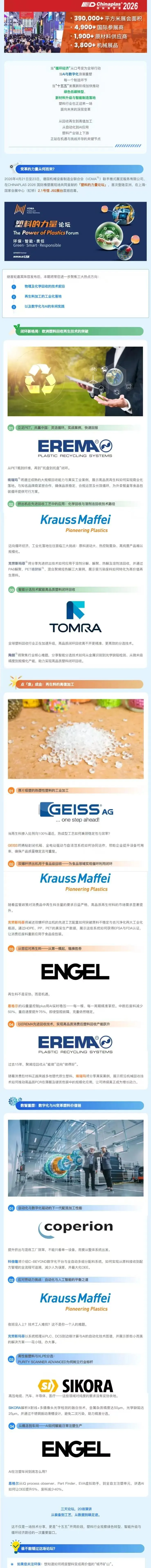 展会动态丨全是干货!“塑料的力量论坛”议程亮点第二弹→物理及化学回收,再生料加工提效、AI赋能...