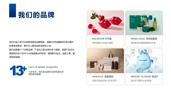 “诞生自韩国中小企业的品牌—未来将成长为能够引领国际美容产品潮流的化妆品品牌!”