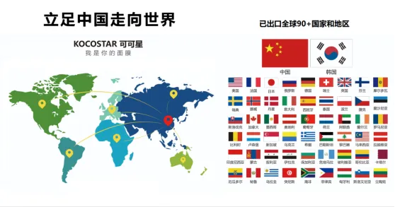 目前,KOCOSTAR 可可星已实现在全世界 90 多个国家及地区销售,品牌口碑与认知度也逐渐提升。 而我们将不断努力,使全世界所有国家和地区的人都能用到 KOCOSTAR 可可星产品!