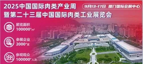 该展会涵盖畜禽屠宰加工、机械设备、食品配料、冷链物流等全产业链领域,展览面积达10万平方米,汇聚国内外近2000家展商及40余国企业参与。2025年9月15-17日,第二十三届中国国际肉类工业展览会在厦门国际会展中心举办,并获得UFI国际认证。