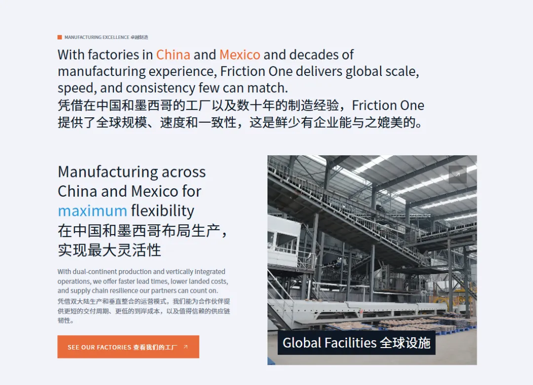 生产基地:在国内拥有三大现代化生产园区,总占地 750 亩,建筑面积 18.5万平方米,设有冲压厂、精密冲压厂、盘片厂、鼓刹厂四大核心生产单元,形成了从钢背、垫片、五金件到刹车片、刹车盘、制动蹄的全链条垂直一体化产业链,实现核心部件全流程自主可控。2025 年完成德雷威墨西哥华雷斯工厂收购后,形成 “中国 3 厂 + 墨西哥 1 厂” 的全球化生产布局。