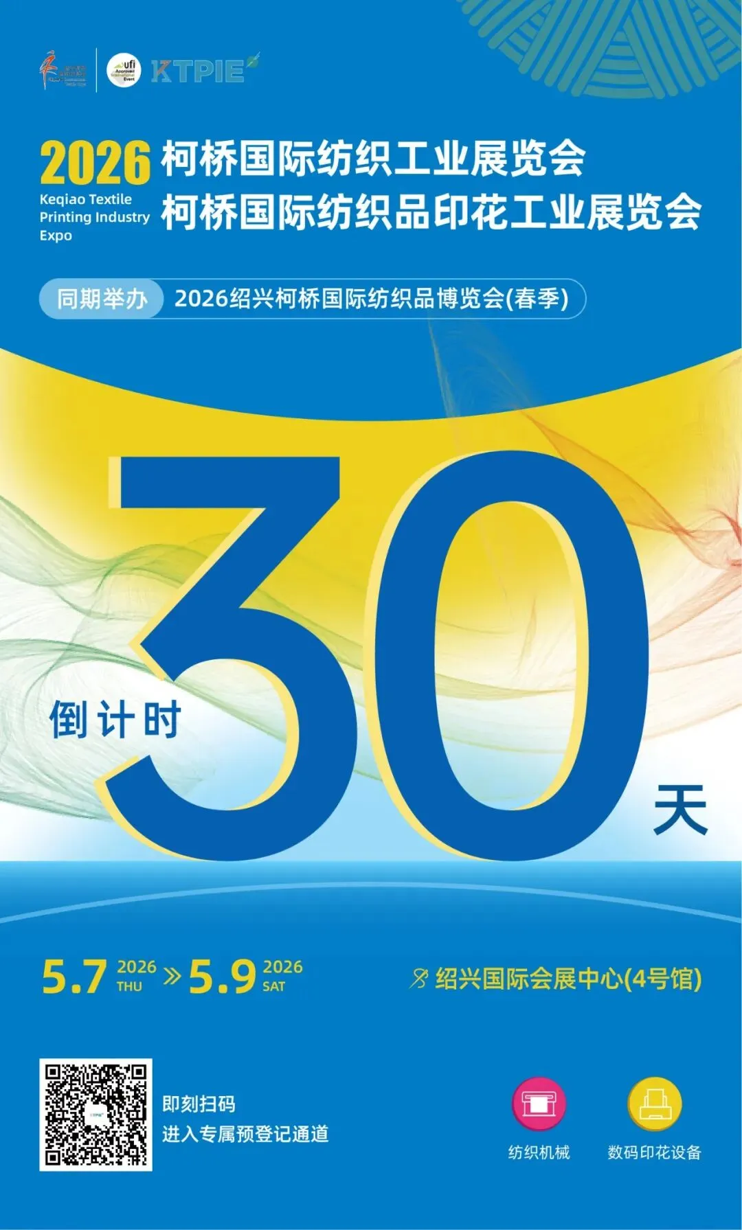 倒计时30天!KTPIE柯桥纺机及印花工业展将于5月7-9日盛大开幕!