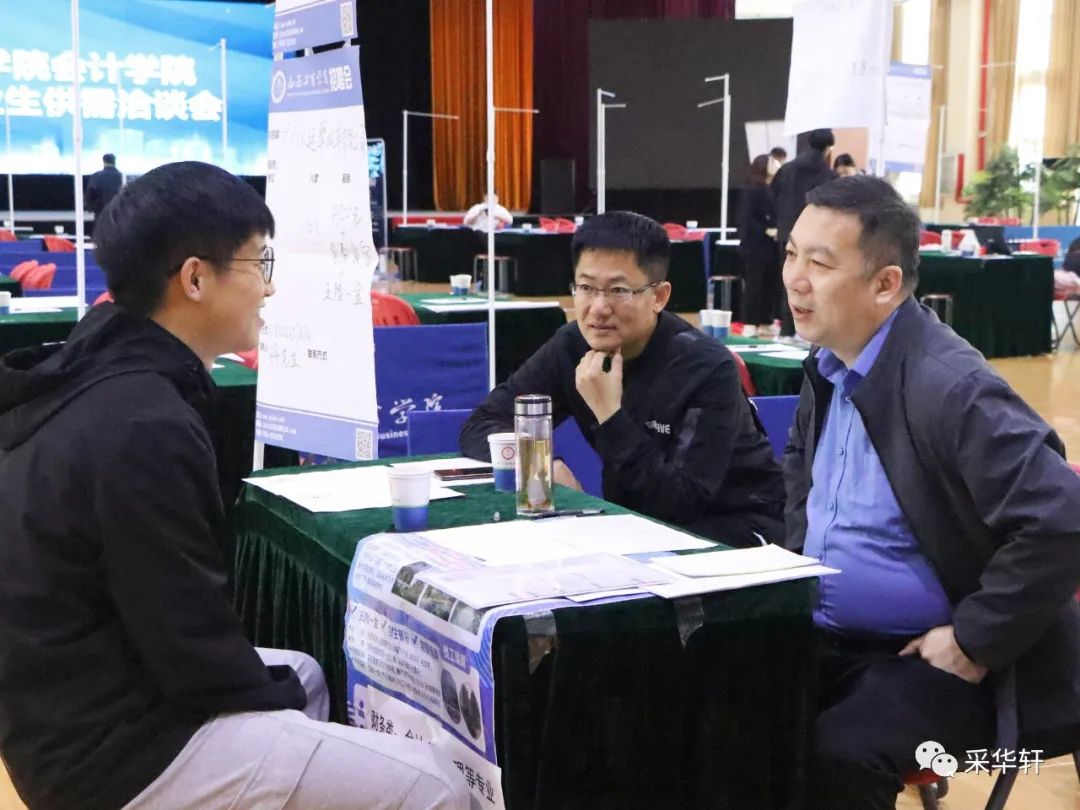 公司负责人通过播放宣传片、PPT展示、面对面交流等方式向应聘者介绍公司的概况、岗位发展方向、人员需求以及选择本单位的理由。副校长胡中艾,就业创业处处长高艳霞,会计学院党总支书记宋国平、院长郭冰、副院长刘锦辉、魏涛、副书记沙菲也在会场与用人单位沟通交流,各位辅导员老师也及时为应聘者答疑解惑,指导简历和应聘技巧。