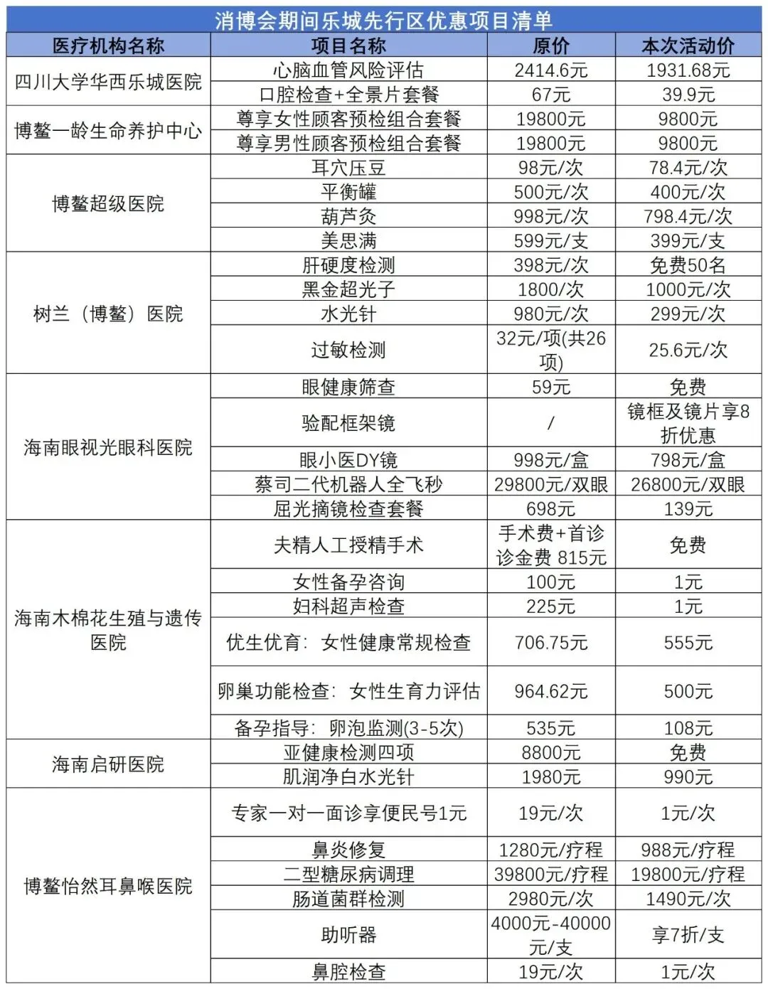 ?“消博乐城春养生”18家医院推出59项优惠医疗项目,涵盖检查、诊疗、康复、健康管理等领域,园区接驳车提供便利服务,以优质医疗服务惠及群众。