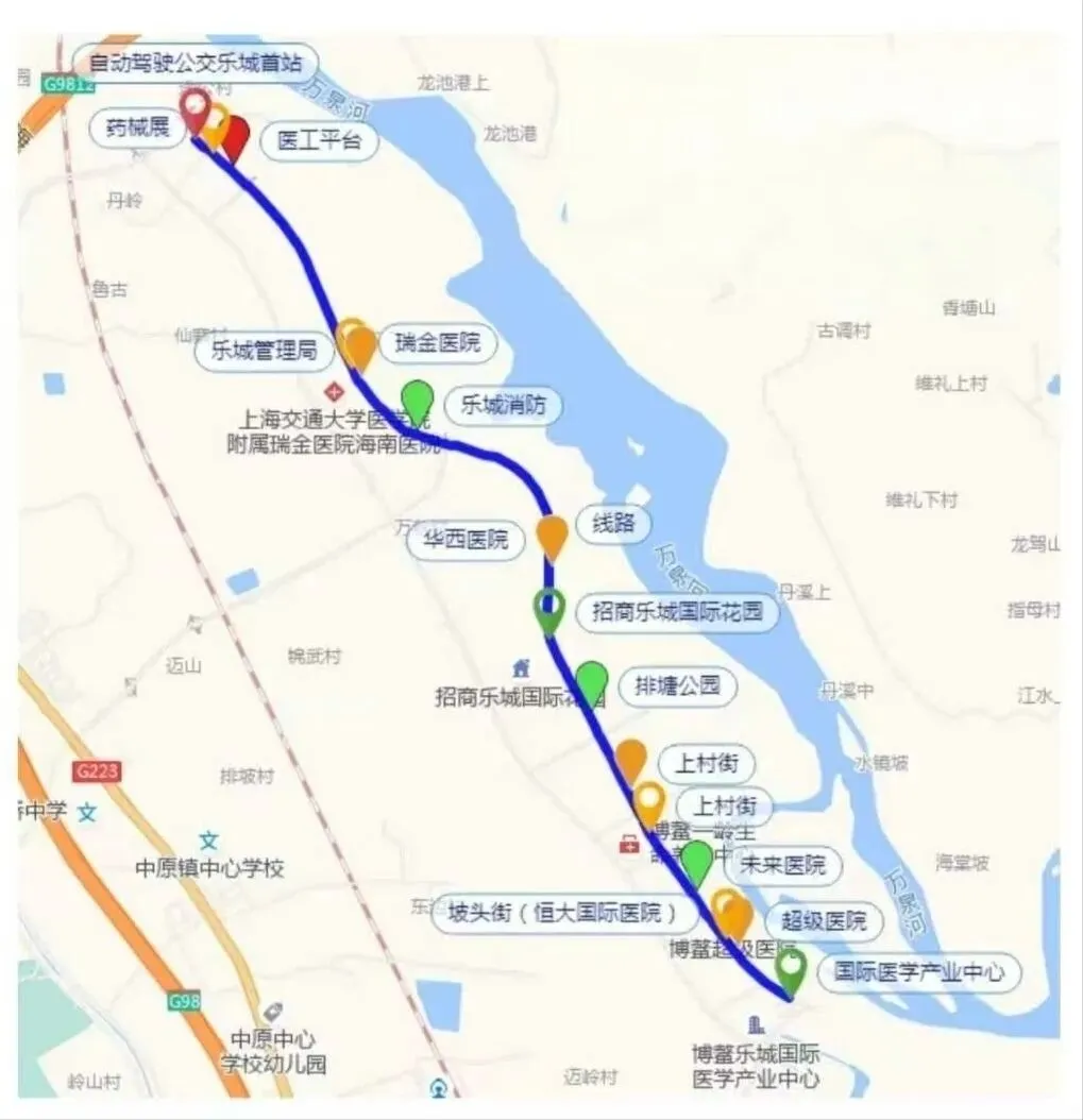 温馨提示:乐城穿梭小巴士为无人驾驶车,到站停靠,每天9:00-11:30、14:00-17:00运行,半小时一班。