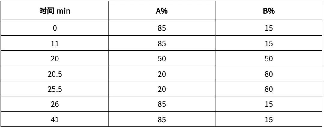 流动相:A 相:20mM甲酸铵(pH3.0) ;B 相:乙腈