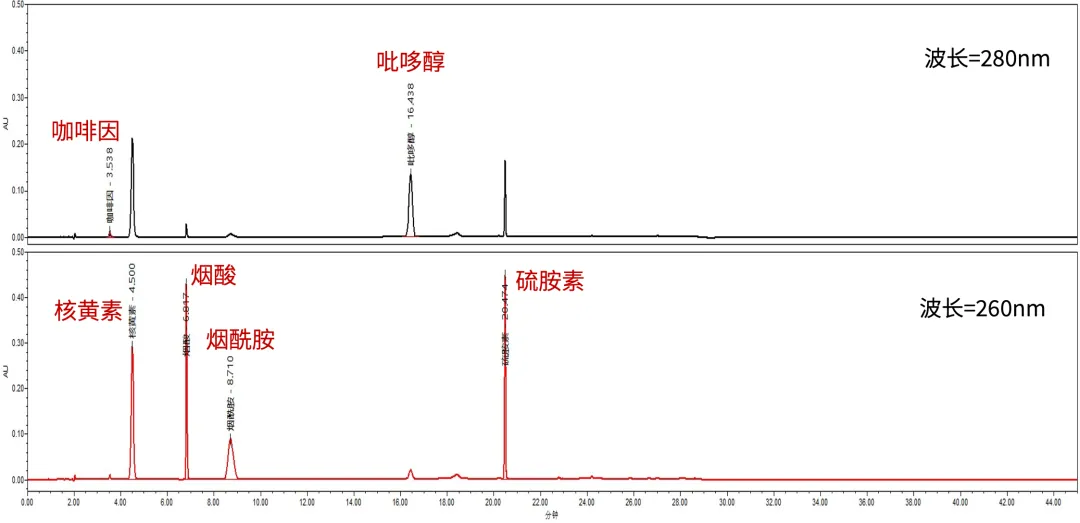 保健食品中硫胺素、核黄素、吡哆醇、烟酸、烟酰胺和咖啡因的测定