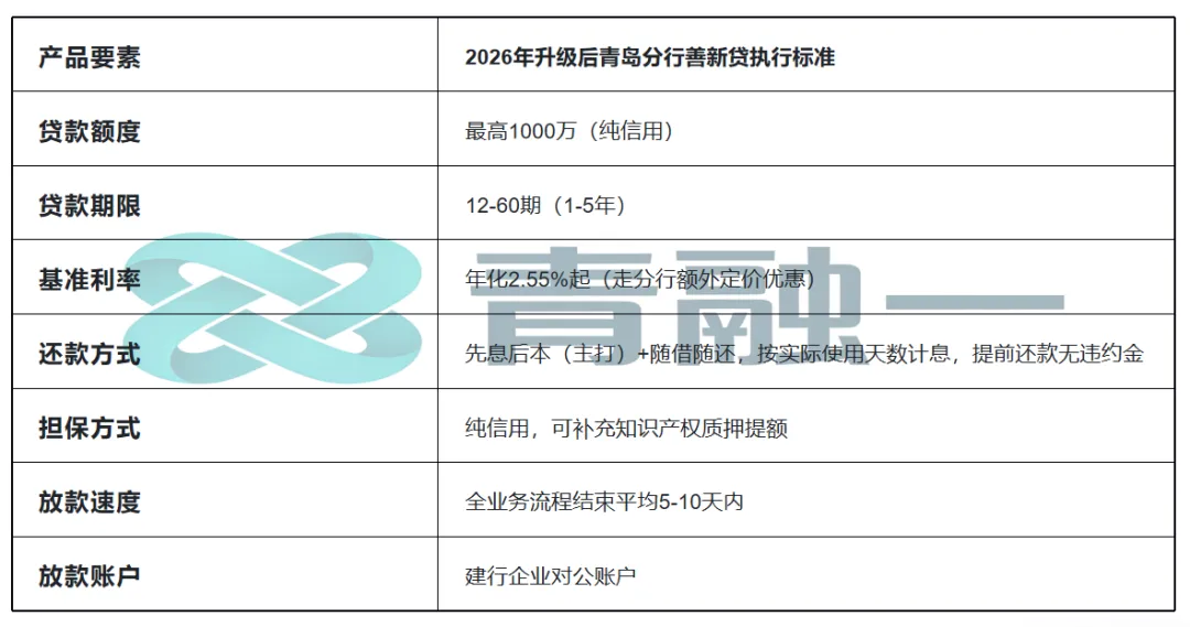 主体:青岛注册小微企业,成立≥24 个月 资质:拥有任意一项科创认定(专精特新 / 高新技术) 知识产权:至少 1 项有效专利/软著/布图 征信:企业+法人无当前逾期,无连三累六