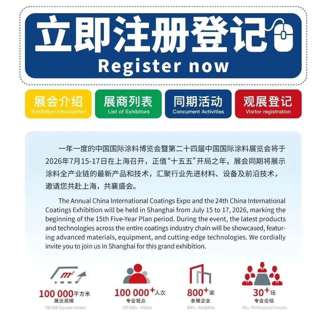 展位预订 | 2026年7月15-17日第二十四届中国国际涂料展览会与您相约上海新国际