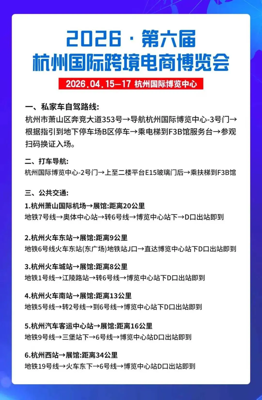 2026 年 4 月 15 日 - 17 日,杭州国际博览中心,2026第六届杭州国际跨境电商博览会邀您共赴这场行业盛会。