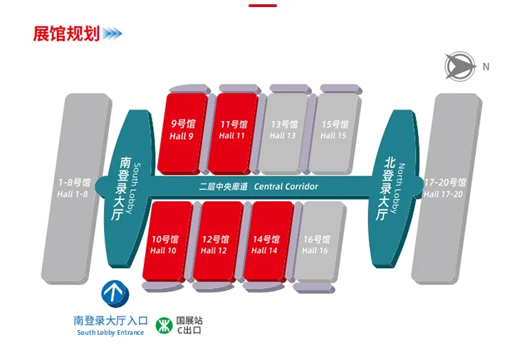 12号线/20号线国展站C1/C2口,国展北站D口,直达深圳国际会展中心。