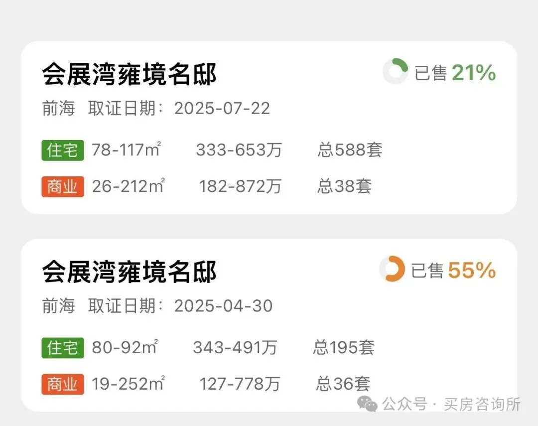 早在2024年底,一期会展湾雍境花园约1300套房子就已全部交付。按合同,其实最晚交付期限是2025年底前。