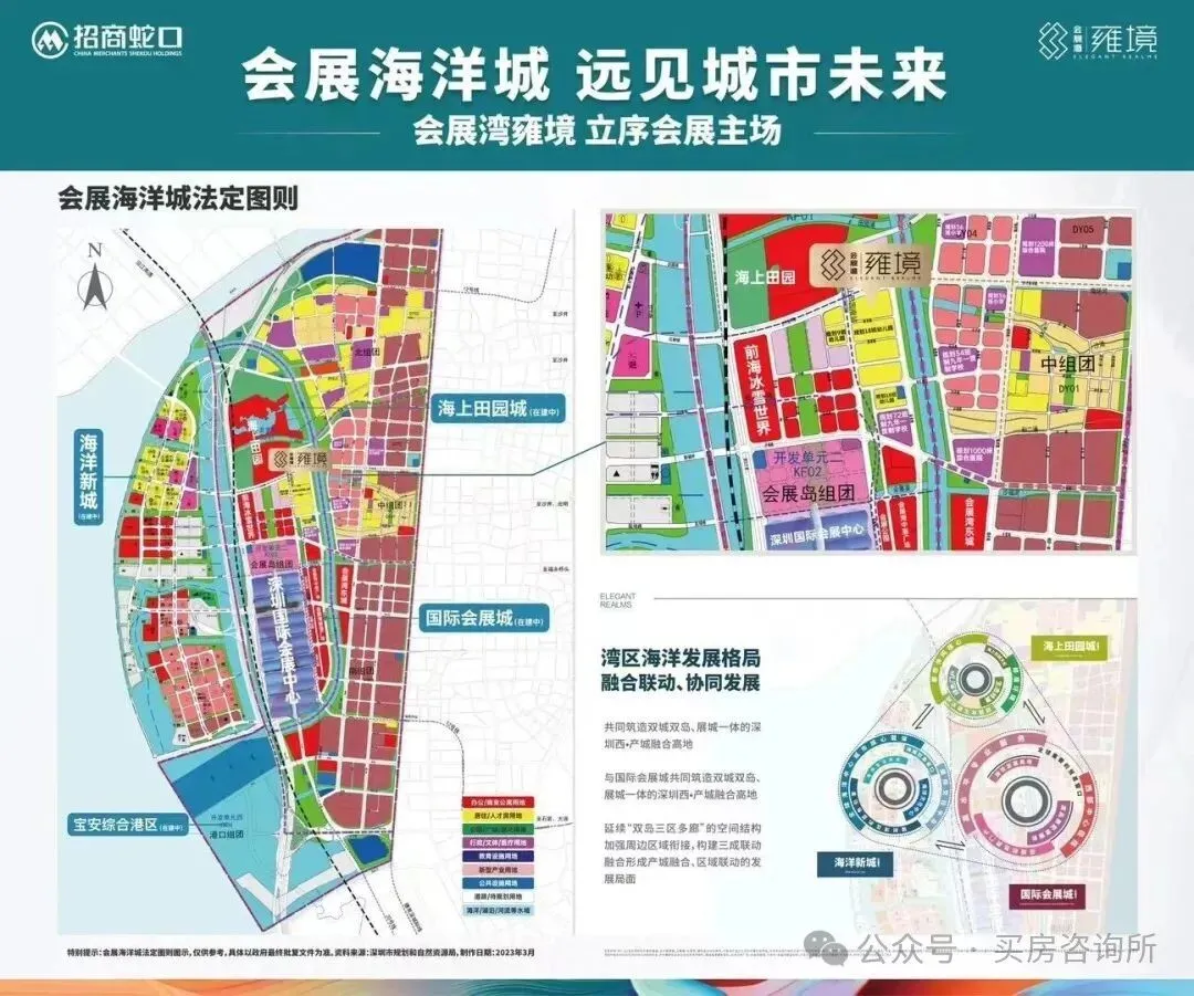 会展湾雍境名邸项目展示中心位于宝安区沙井南环路与展城路交汇处,毗邻华发冰雪世界(在建)、宝安国际会展中心片区,海上田园、海洋新城。项目还有个亮点就是景观视野,部分户型朝向可以看冰雪世界,以及海景